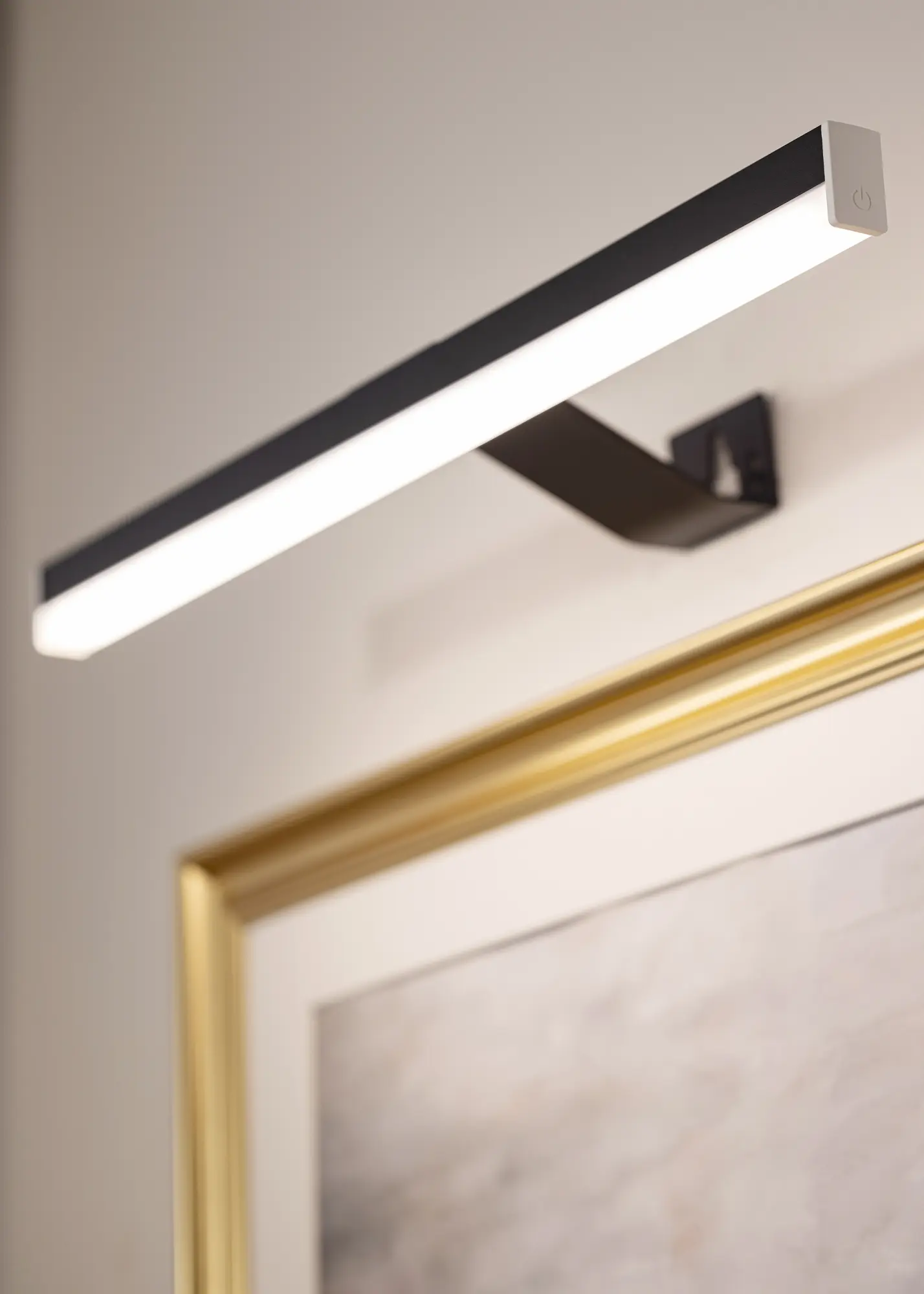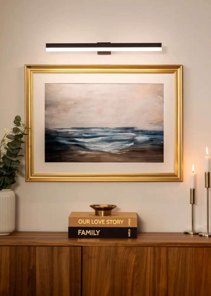 KAILA Radiate on stiilne ja patareitoitega musta värvi pildivalgustus, mis on loodud esitlema sinu kunstiteoseid ilma segavate juhtmeteta. Juhtmevaba konstruktsioon teeb paigaldamise lihtsaks ja paindlikuks, ilma et peaksid arvestama pistikupesaga. Elegantne must viimistlus annab kaasaegse ja rafineeritud ilme, samal ajal kui ühtlane valgus toob muljetavaldavalt esile detailid ja värvid. Lihtne paigaldada ja mugav kasutada – praktiline ja stiilne lahendus sinu seinakunsti jaoks.
