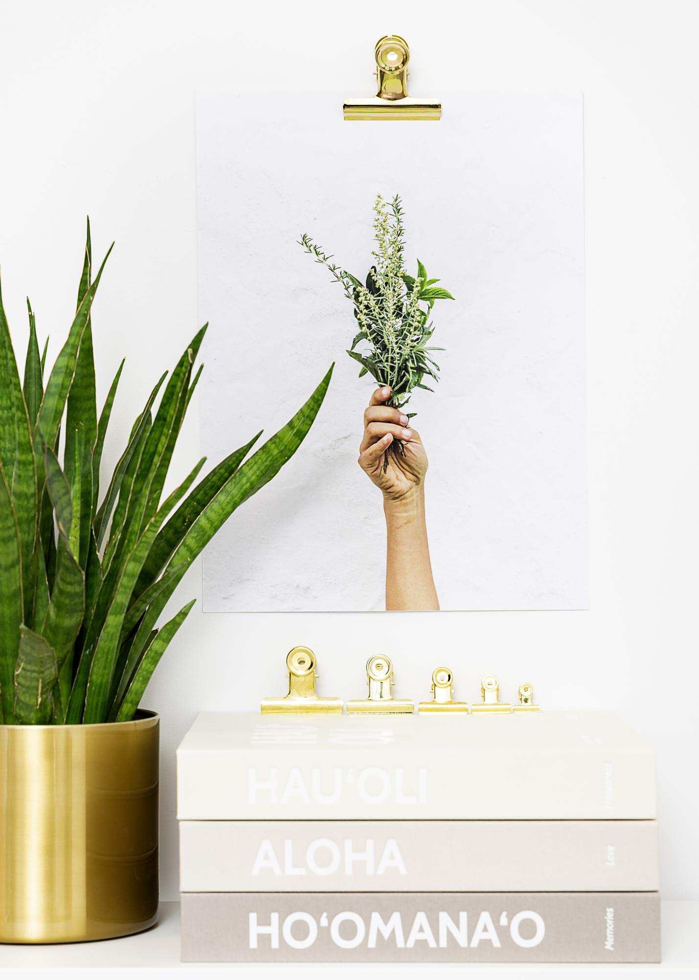 Metallklamber elegantse ja läikiva kuldviimistlusega, mis pakub su posteritele ja prinditud piltidele trendikat ja minimalistlikku riputusviisi. Postriklambrite disain on stiilne ning klambri ümarad ülaosa augud teevad lihtsaks selle kinnitamise seinale väikese naela või kruviga. Klambri avamisel on tugev haare, mis võimaldab üles riputada isegi kõige õhemat paberit, samas on see ka paindlik ja võimaldab erineva paksusega motiivide kinnitus. Suure postri ülespanekuks kasuta parima tulemuse saavutamiseks kahte metallklambrit.