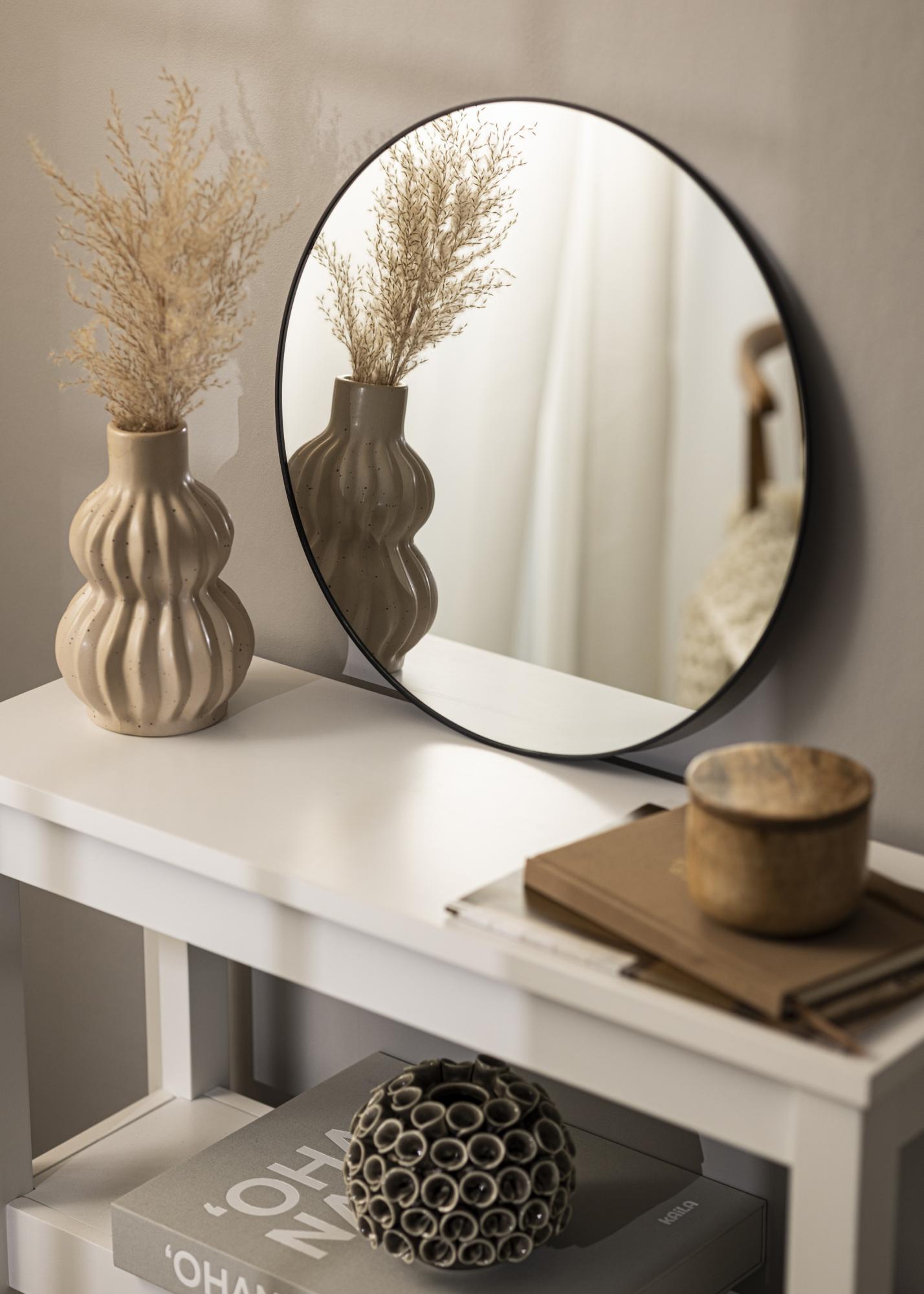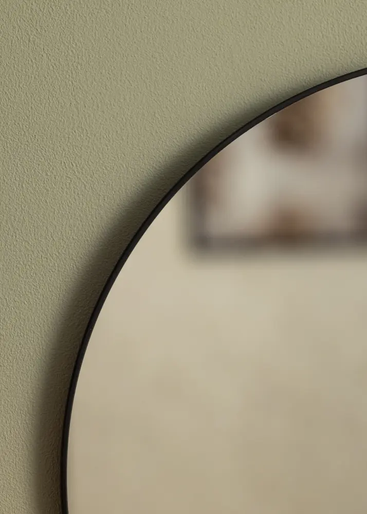 See on ümmargune peegel õhukese stiilse raamiga mustaks värvitud metallist. Õhuke must serv annab peeglile tööstusliku tunde, kuid peegel sobib igasse kodusse ja sisekujundusstiili tänu oma minimalistlikule disainile, mis võib luua ideaalse harmoonia või stiilse kontrasti. Aseta peegel üksi seinale või koos muu dekoratiivse seinakujundusega.