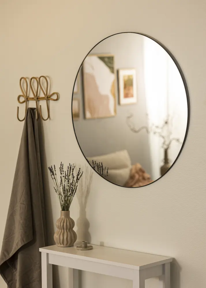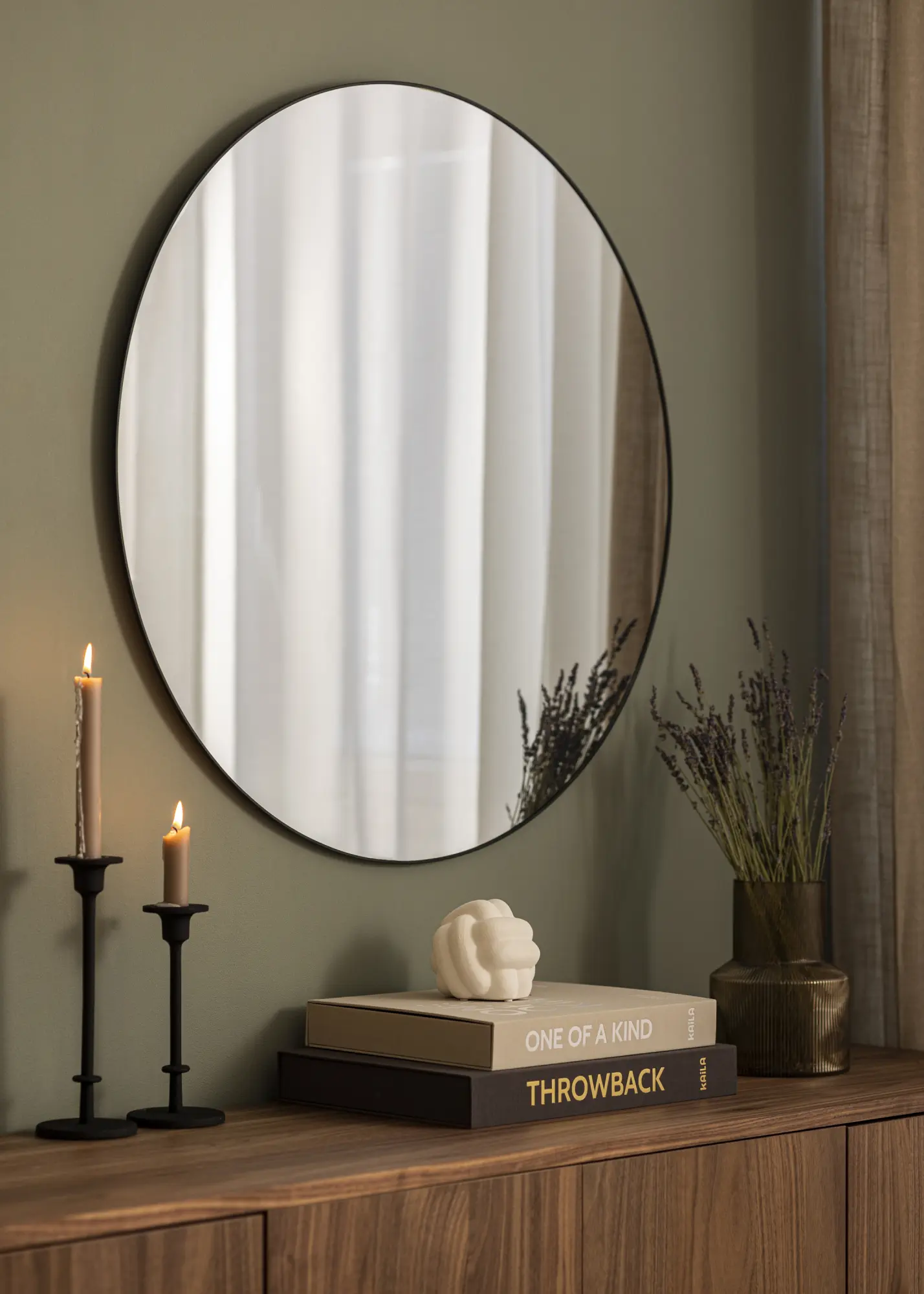 KAILA Thin Black on ümmargune ja stiilne peegel õhukese musta metallraamiga, mis annab peeglile industriaalset tunnet. Peegli minimalistlik disain sobib igasse koju ja sisustusstiili – nii klassikalisse kui ka modernsesse. Harmoonias teiste industriaalsete sisustuselementidega või elegantse kontrastina pehmema sisustusega.