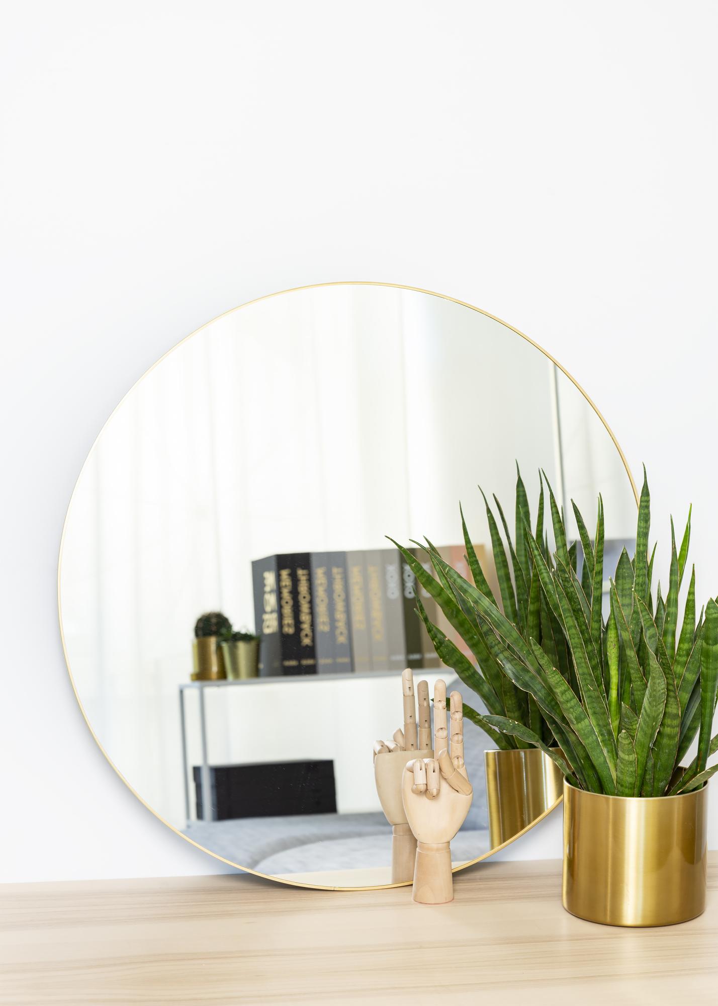 KAILA Thin Brass Rootsi kaubamärgilt KAILA on dekoratiivne seinapeegel stiilse ja messingivärvi raamiga. See ümmargune peegel lisab luksust ja soojust peaaegu igasse ruumi, olgu siis üksinda seinal või koos teiste ilusate seinaelementidega.