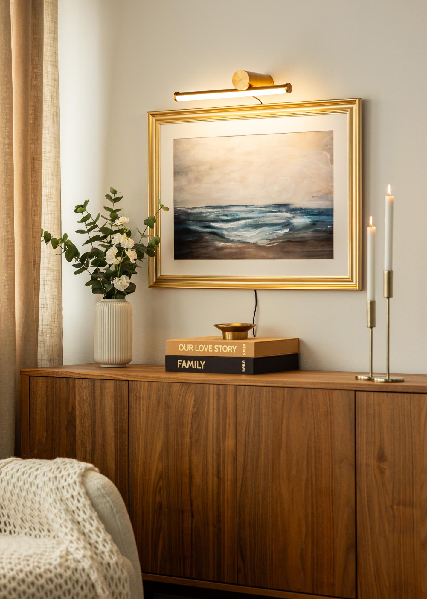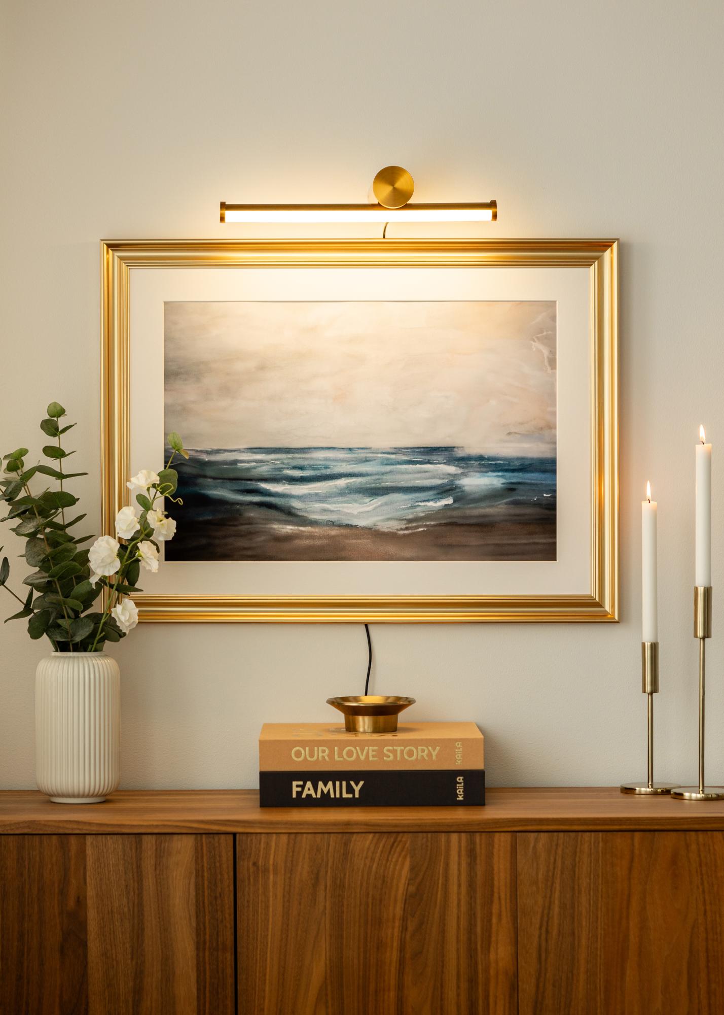 See elegantne pildivalgustus pakub täiuslikku kombinatsiooni stiilist ja funktsionaalsusest. Pikkusega 40 cm ja sügavusega 15,3 cm on see ideaalne sinu kunstiteoste või fotode esiletoomiseks meeldiva ja ühtlase valgusega. Selle modernne messingist disain annab sinu sisekujundusele peene puudutuse, samal ajal olles harmooniliselt sobituv enamikku keskkondadesse.