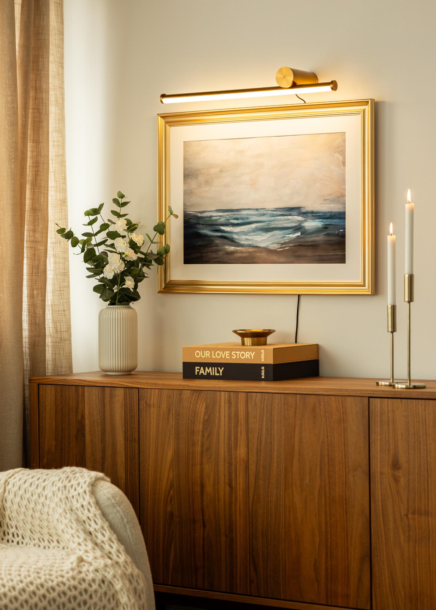 See messingist pildivalgustus on stiilne ja funktsionaalne valik, et rõhutada oma kunstiteoseid maitsekalt. Sügavusega 15,3 cm ja pikkusega 60 cm on see kohandatud, et sobida kuni 100 cm laiuste piltidega. Tänu oma elegantsele ja ajatule disainile sulandub see erinevatesse sisekujundusstiilidesse ja annab toale eksklusiivse tunde. Messingviimistlus lisab rafineeritud detaili, mis tõstab sinu kunsti üldmuljet.