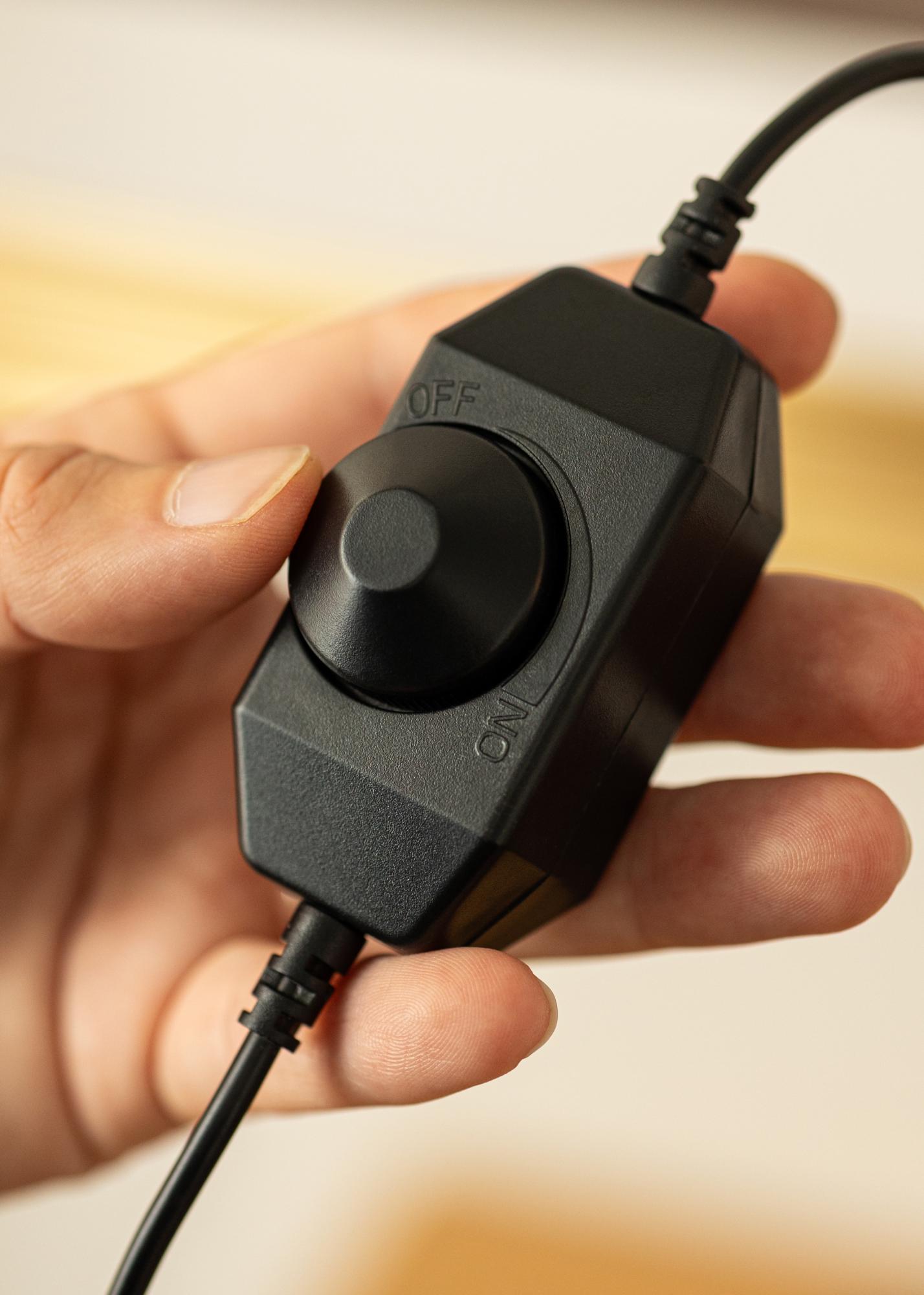 Üks selle valgustuse suurtest eelistest on sisseehitatud dimmer. See võimaldab teil hõlpsalt reguleerida valgustugevust sõltuvalt päevaajast või meeleolust, mida soovite luua. Lihtsa dimmeri keeramisega saate seada valguse tugevamast kuni pehmemaks valgustuseks, muutes selle väga paindlikuks erinevates valgustussituatsioonides.