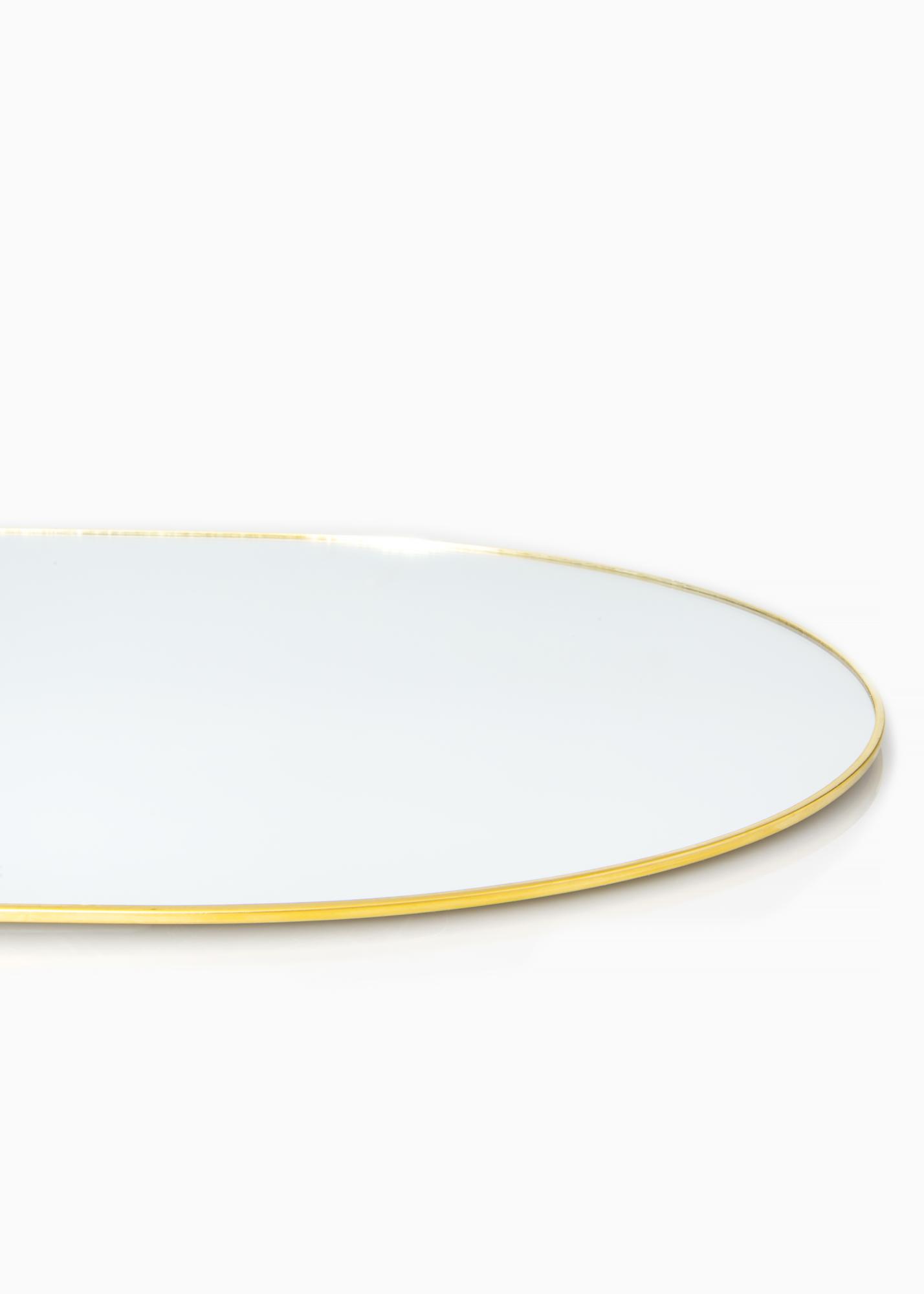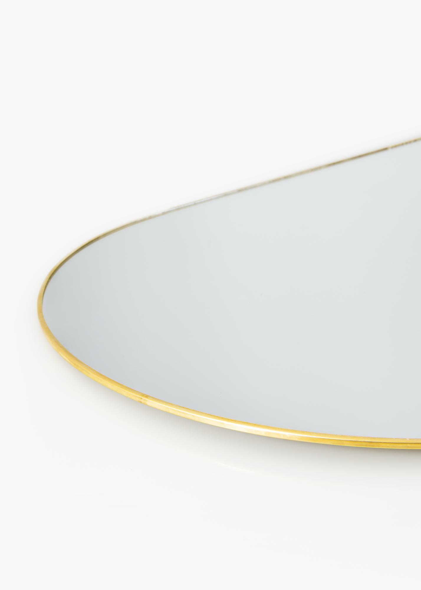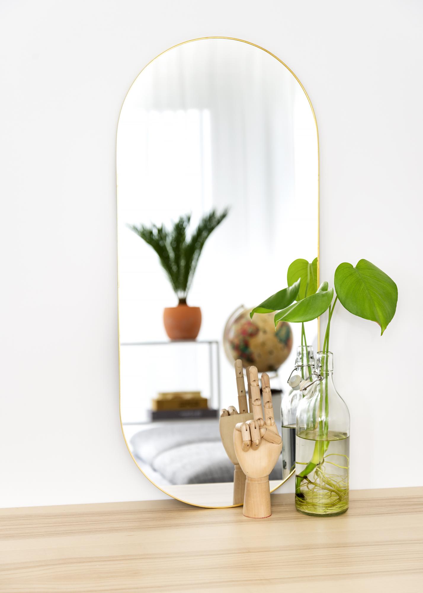 See on väga dekoratiivne seinapeegel, millel on stiilne Skandinaavia disain KAILA-lt. Ovaalne kuju annab peeglile pehme ja elegantse ilme, mida veelgi täiendab õhuke metallraam messingist. See on peegel, mis tundub ühtaegu nii kaasaegne kui klassikaline, mistõttu sobib see enamike kodude ja sisustusstiilidega.