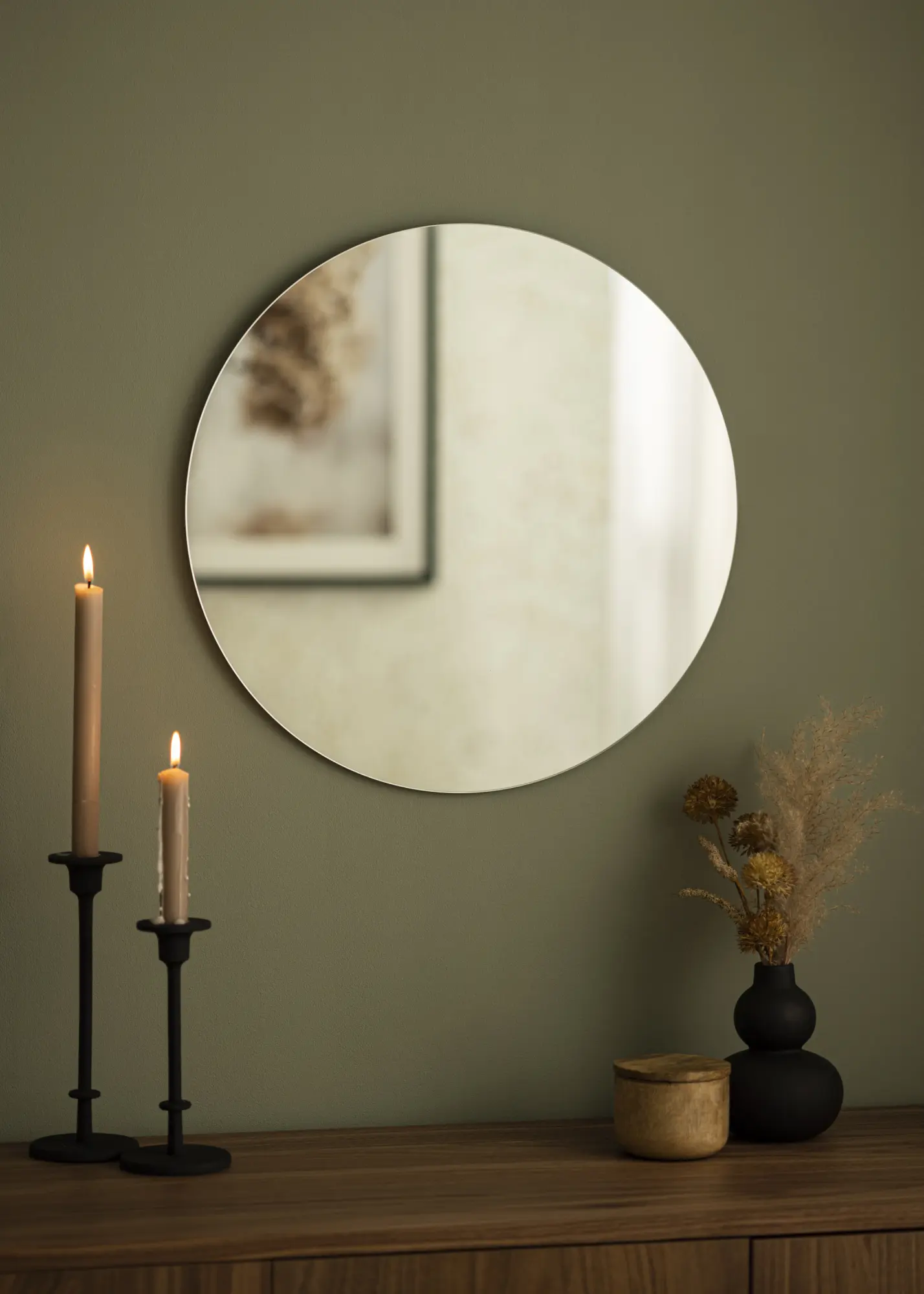 50 cm Ø ümmargune peegel, mis kuulub KAILA ümmarguste peeglite sarja. Saadaval kokku 13 suuruses, et leida suurus, mis sobib ideaalselt teie ruumi. Peegel on äärmiselt õhuke ja stiilne ning sobib igasugustesse ruumidesse ja sisustusstiilidesse.