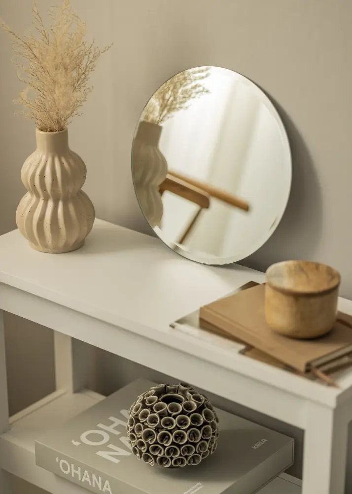 Detailid loovad terviku! Nagu selle elegantse seinapeegli puhul; kaunis faasitud serv, mis annab ümmargusele ja stiilsele peeglile eksklusiivsema ilme. Peegli ümar kuju loob sinu kodus pehmema tunde ja elegantne faasitöötlus viitab detailitundlikkusele.
