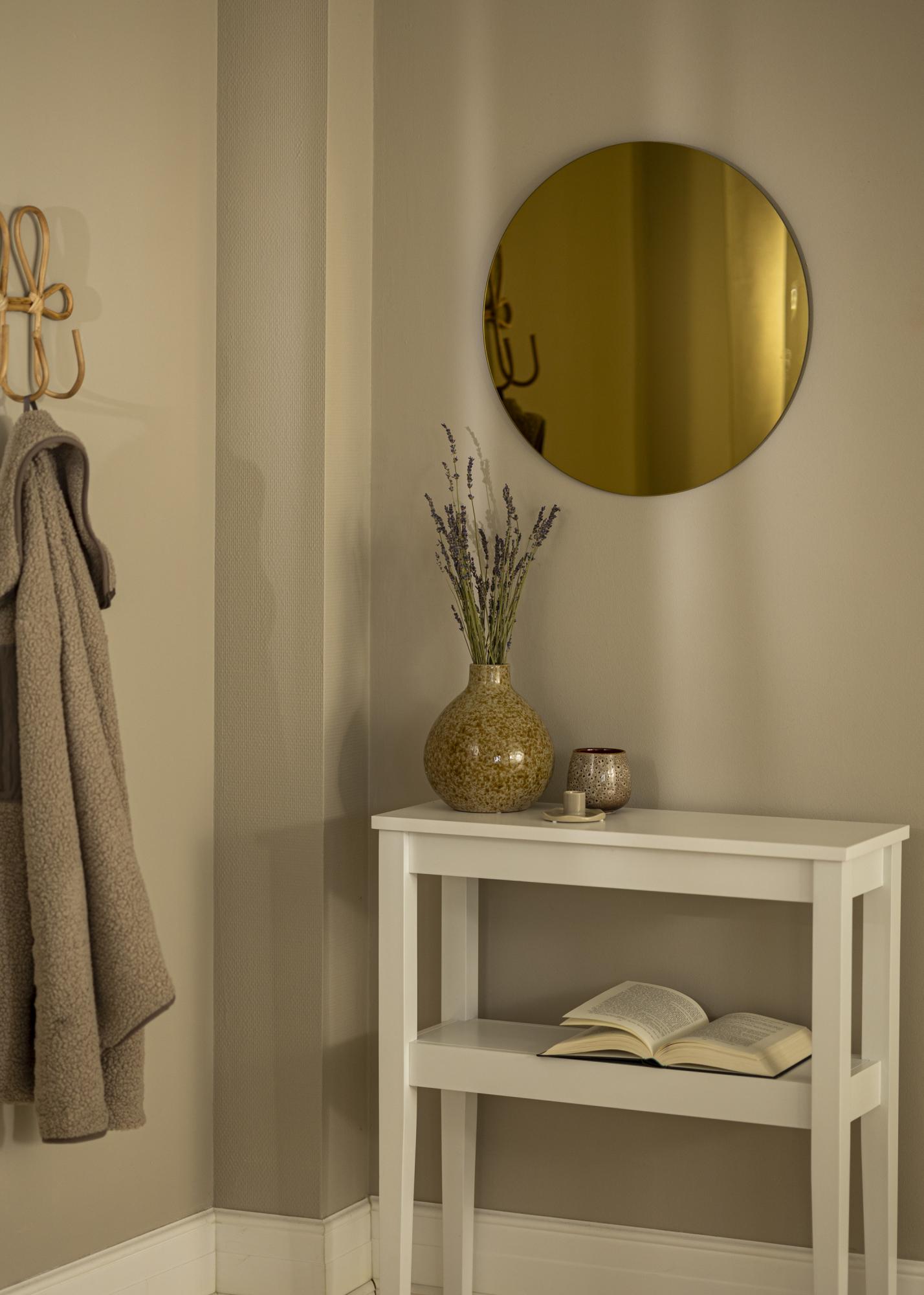 KAILA Ümmargune Peegel Kuld on suurepärane näide sellest, kui hea see võib välja näha, kui stiilne vorm kohtub tõhusate detailidega. See ümmargune peegel on õhuke ja raamita, mis annab sellele kaasaegse ja minimalistliku ilme. Seda kombineeritakse kauni kuldse tooniga peegliklaasiga, mis tõstab kogu ilmet ja muudab peegli maitsekalt silmapaistvaks.