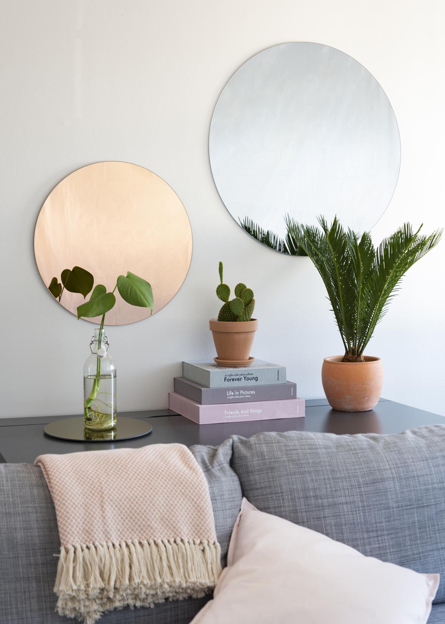 KAILA ümmargune peegel Rose Gold on saadaval mitmes suuruses. See variant on suurejoonelise suurusega 110 cm Ø.