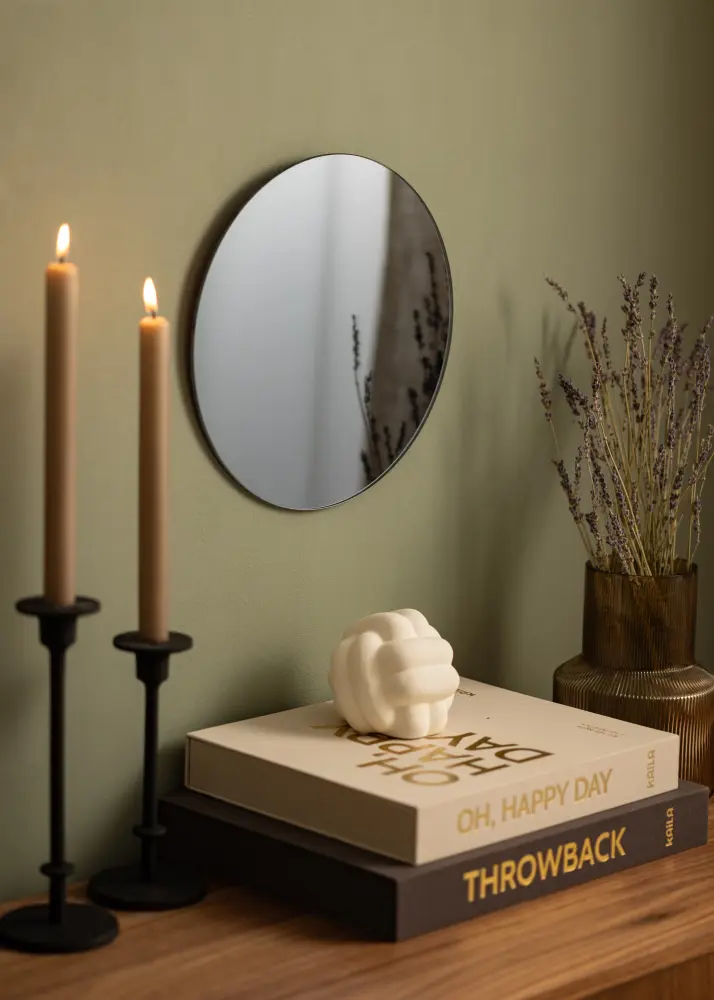 KAILA ümmargune peegel Smoked Grey on saadaval viies suuruses, millest see variant on suuruses 30 cm Ø.