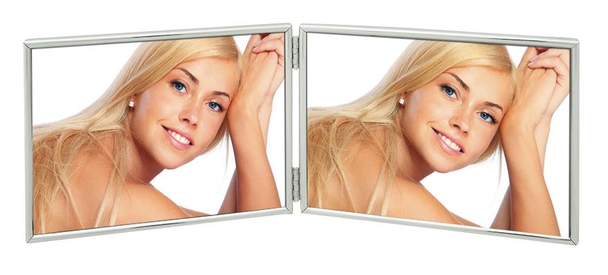 Loo kodus stiilne tunne, kasutades hõbedasi sisustuselemente! See nägus volditav raam on valmistatud uushõbedast ning sellel on ruumi kahe horisontaalse pildi jaoks, mille formaat on 10x15 cm. Raam näeb suurepärane välja kummuti või öökapil koos näiteks hõbedaste küünlajalgade ning roosade või lillade lilledega.