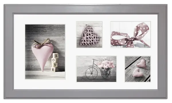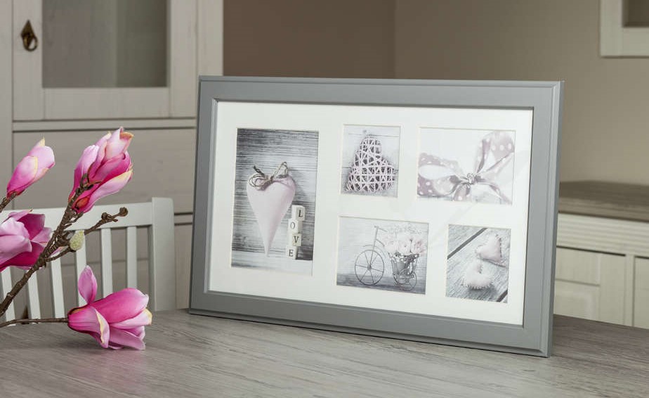 Kodust saab palju isikupärasem, kui seintele riputada oma lemmikfotosid. Siin on meil luksuslik kollažiraam, mis on helehall valge paspartuuga. Kuna see on kohandatud erineva suurusega fotodele, annab see ekstra elava mulje. Täitke see julgelt samateemaliste fotodega, et luua kaunis tervik.