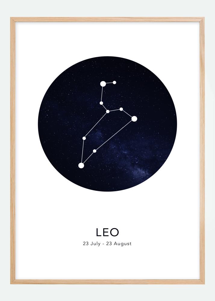 Anna kellelegi, keda sa armastad, isiklik maal! See stiilne plakat kujutab lõvi tähtkuju musta ja sinise tähistaeva taustal. Allpool on nimi koos kuupäevaga inglise keeles.