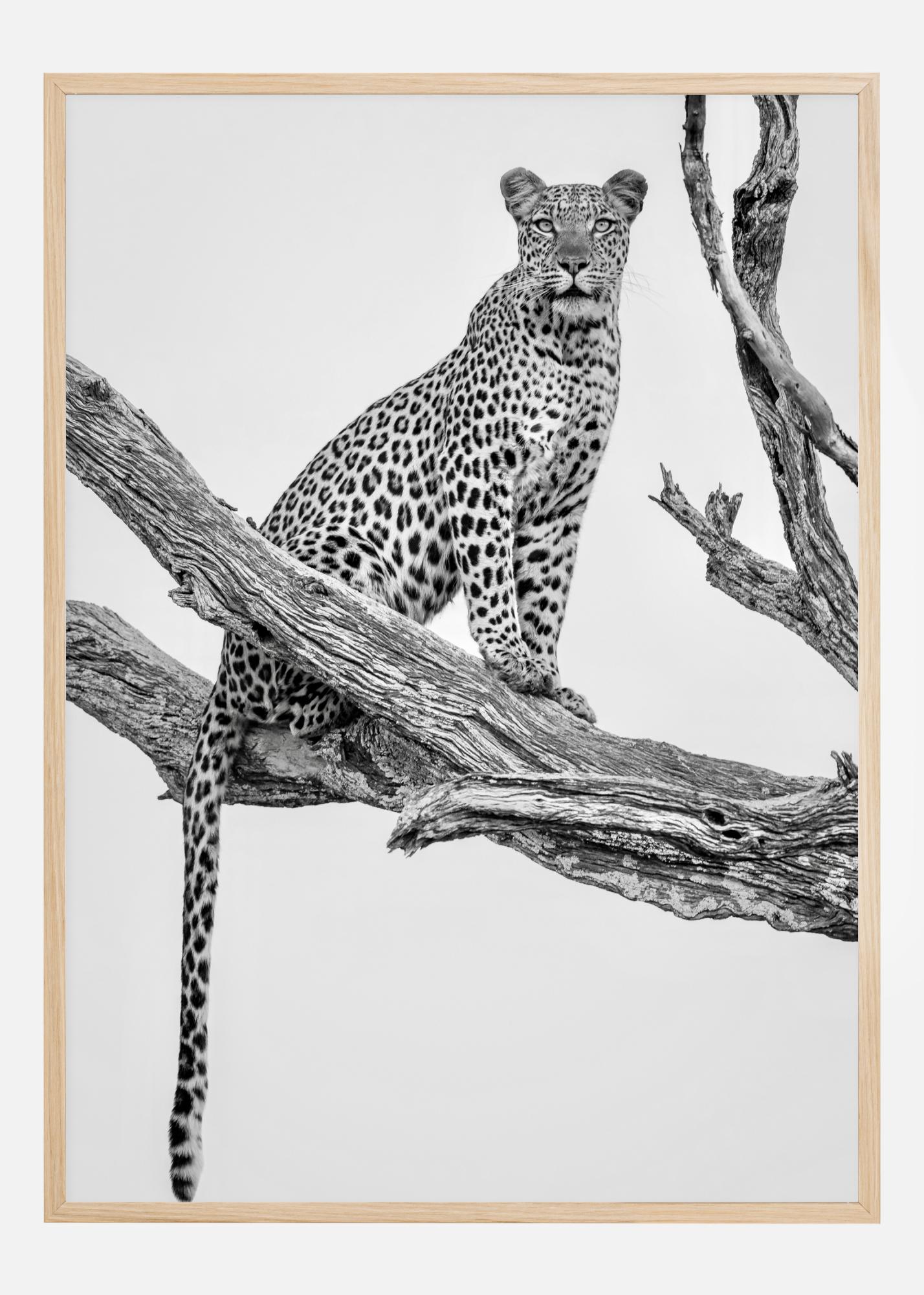 Loodusplakat leopardiga, kes istub puuoksal valvel. Leopard vaatab kaugusesse ja tekitab tunde, et midagi juhtumas on. Tunne ootusärevust selle trükisega.