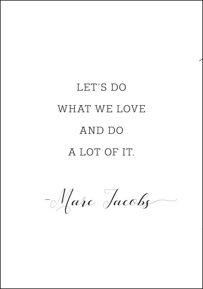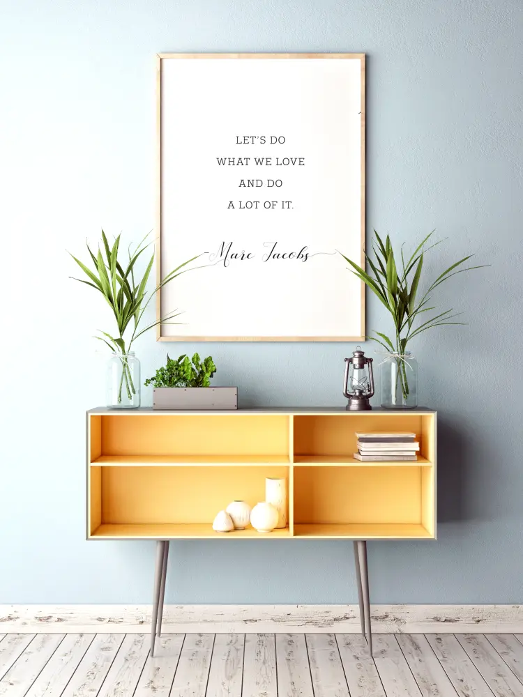 See motiveeriv plakat kordab Marc Jacobsi tuntud fraasi inglise keeles: "Let's do what we love to do and do a lot of it" - "Tehkem seda, mida armastame teha, ja tehkem seda palju". Must kiri, mis ilmub valgel taustal, edastab kohest sõnumit. Ideaalne valgele magamistoa seinale.