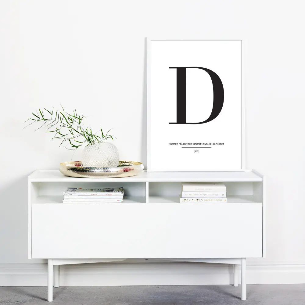 Lihtsuses peitub ilu ning seda tõestab tõesti see stiilne poster tähega D mustal valgel taustal. Plakatil on kena tüpograafia ja see tuleks täiendada sama seeria teiste tähepostritega, et luua trendikas ja ilus galerii seinale. Vali oma lemmikpostrid tähtedega ja vali meie suurest kvaliteetraamide valikust, siis jääb üle ainult lasta fantaasial koduseintel voolata.