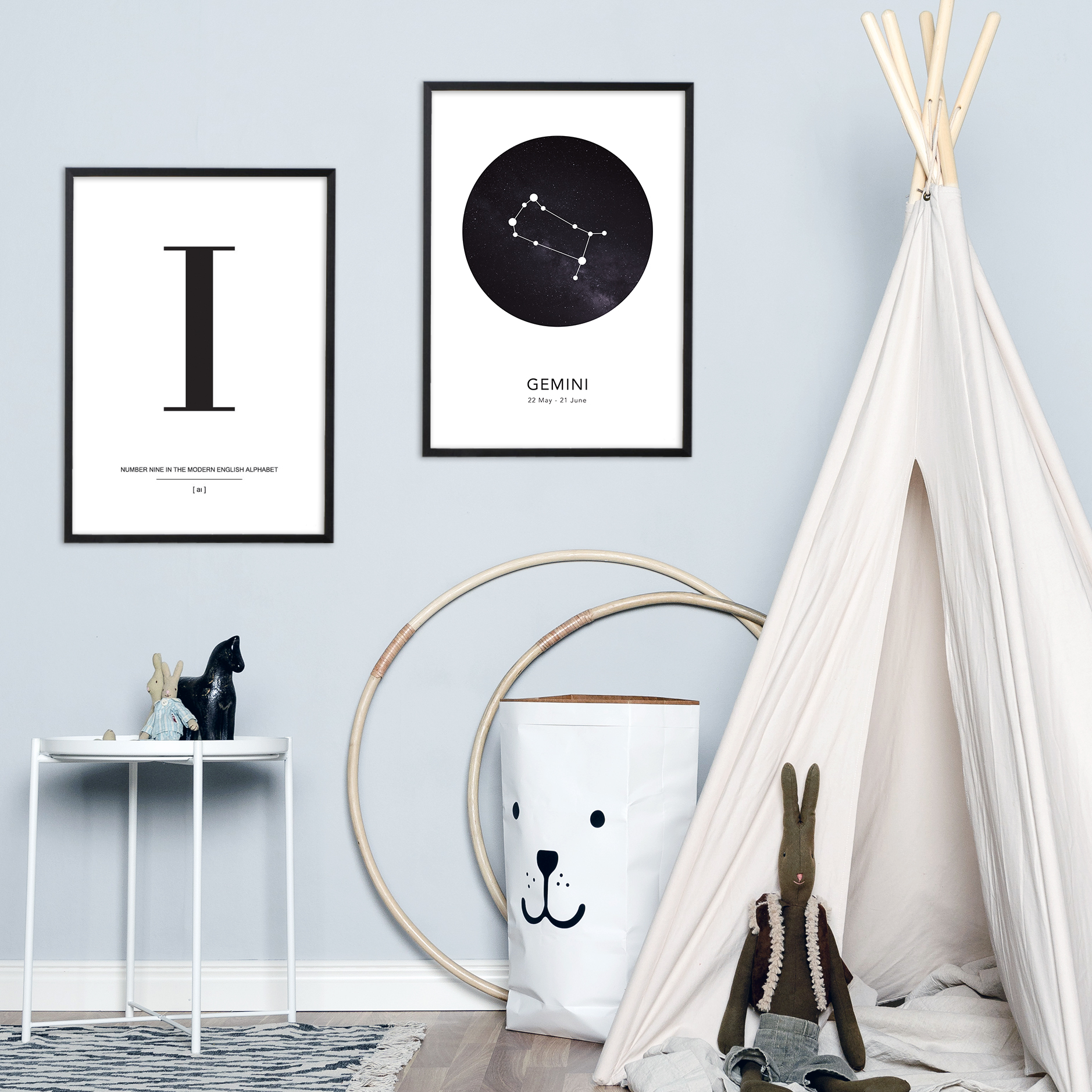 I lihtsuses peitub ilu ja seda tõestab tõesti see stiilne poster, millel on must täht I valgel taustal. Plakatil on kena tüpograafia ja see tuleks täiendada teiste sama sarja tähtpostritega, et luua trendikas ja ilus pildisein. Vali oma lemmikpostrid tähtedega ja vali meie suurest kvaliteetsete raamide valikust, siis jääb vaid lasta fantaasial koduseintel voolata.