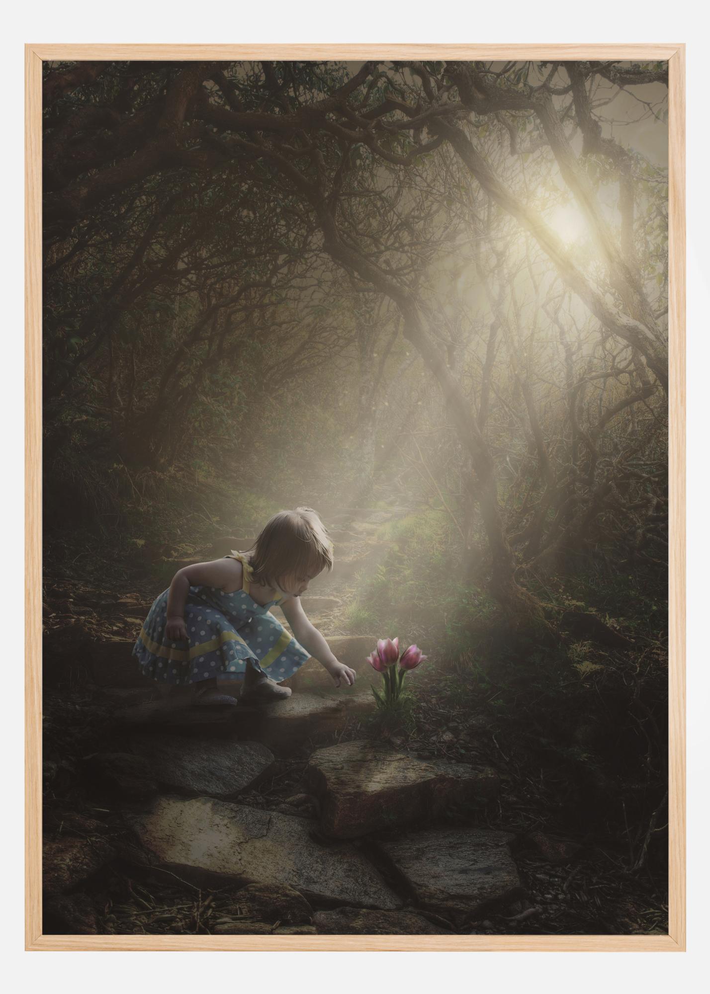 Kaunis graafiline kunst, mis viib sind muinasjutulisse maailma oma maagilise valguse, võlumaastiku ja avastusretkelise väikese tüdrukuga. Unenägulik poster, mis muutub üha paremaks, mida suuremaks see muutub.