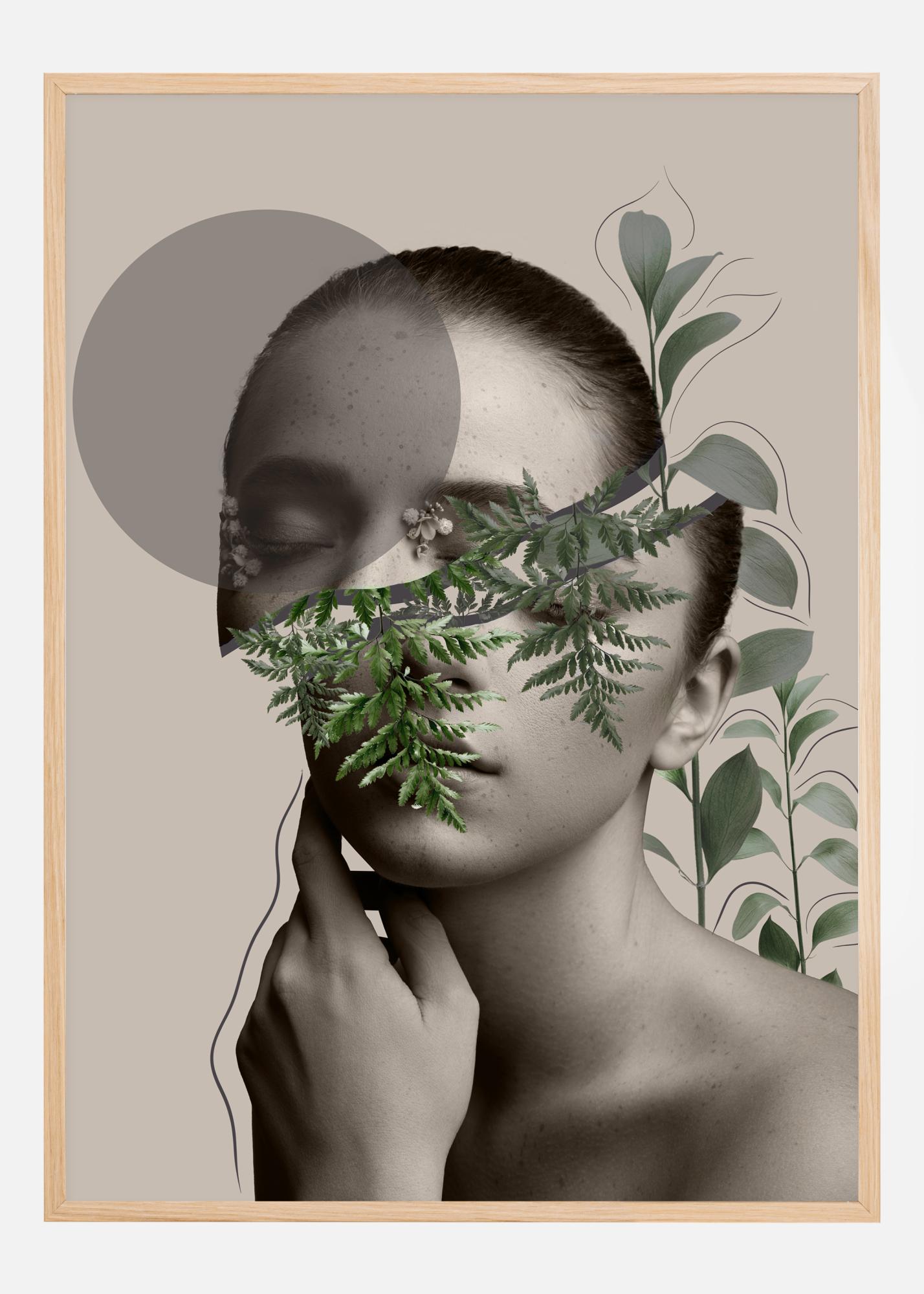 See ilus portree on inspireeritud kollaaži tegemise kunstist. Erinevad pildid on asetatud kõrvuti, et luua kaasaegne ja stiilne kunstiteos. Pildil olev noor tüdruk on ümbritsetud kaunist rohelusest, mis loob rahu ja vaikuse tunde. Ideaalne poster avangardistlikku magamistuppa või minimalistlikku elutuppa.