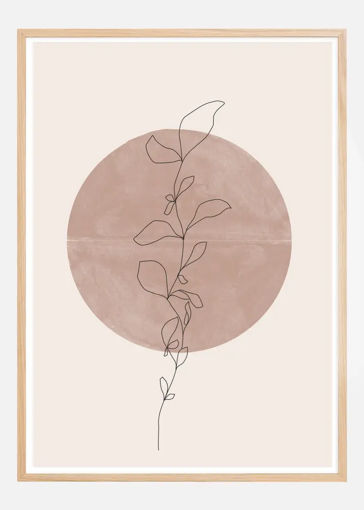 Plakat kasutab pehmet ja loodusest inspireeritud värviskeemi, mis ühendab sooja pruuni peene elevandiluu varjundiga, andes orgaanilise ja samal ajal modernse mulje. See trükk sobib ideaalselt neile, kes soovivad tuua oma ruumi looduse rahu ja elegantsi tunnet. Selle lihtne ilu ja meeldivad värvitoonid muudavad selle ideaalseks erinevat tüüpi interjööride jaoks, alates boheemlikest kuni skandinaavia stiilideni, pakkudes kodule lihtsust ja graatsilisust.