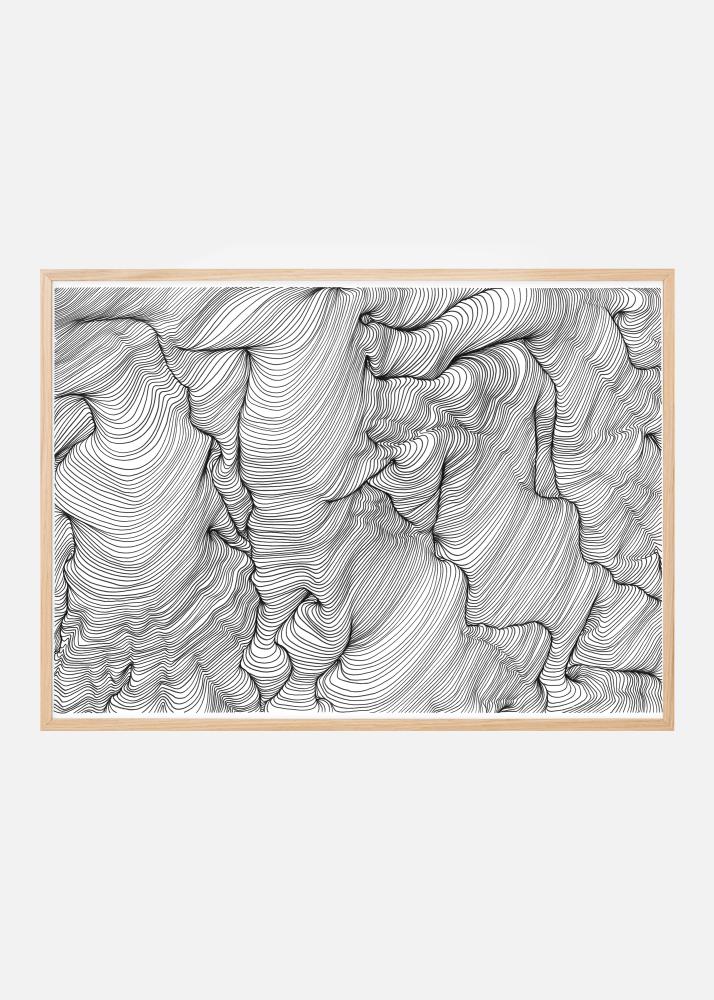 Abstraktne kunstplakat musta tindiga, millel on lokkavad jooned, mis loovad põnevaid kujundeid, autoriks Belinda Hellberg, Hells Bells Sthlm. Motiiv on ümbritsetud kergelt õhemast valgest passepartout'st, mis toob selle sisu tõhusalt esile. Lihtne ja stiilne plakat, mida on lihtne kombineerida teiste lemmikutega suuremal galerii seinal.