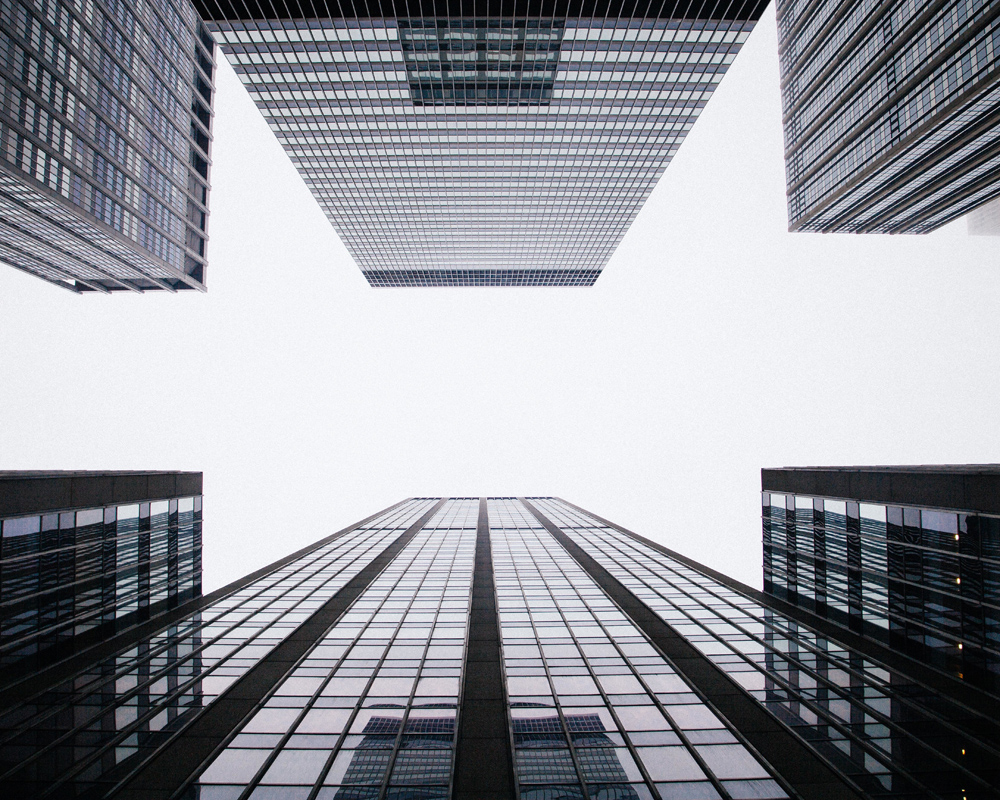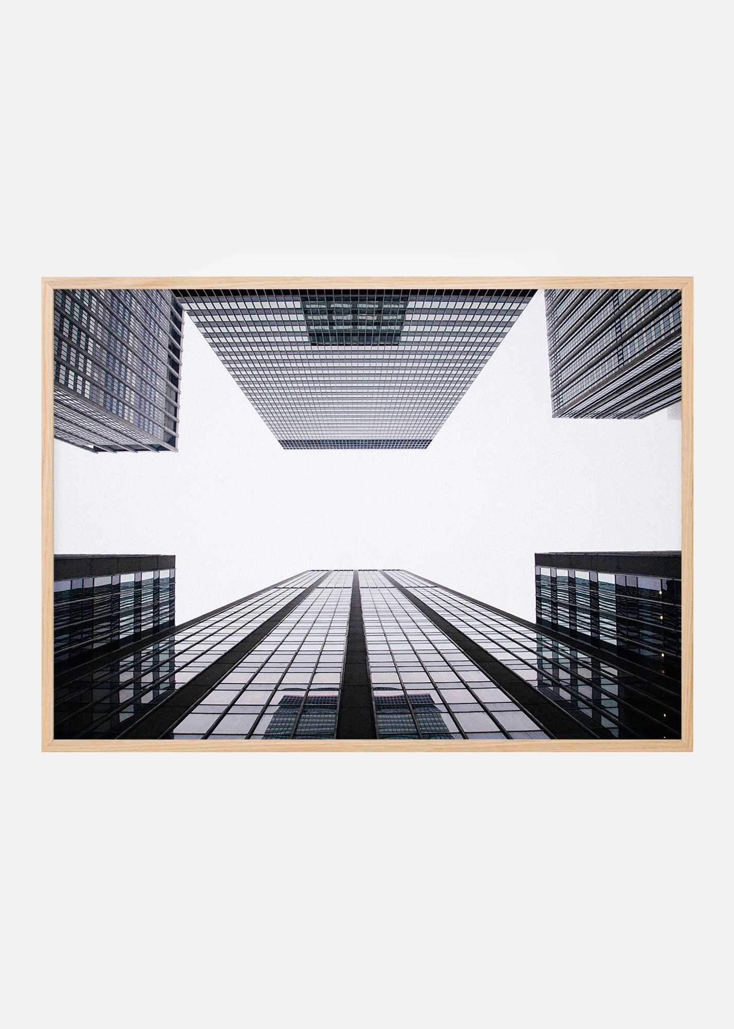 Arhitektuuriposter kasvavate pilvelõhkujatega pilvvalge taeva taustal. Puhas pilt tumedatest hoonetest valgel taustal, taeva peegeldustega klaasrutudes. Täiuslik kingitus kellelegi, kes armastab graafilisi hooneportreesid. Print näeb hea välja mustas raamis, mis rõhutab pildi tumedaid toone, ning on ilus koos teiste arhitektuurifotodega.