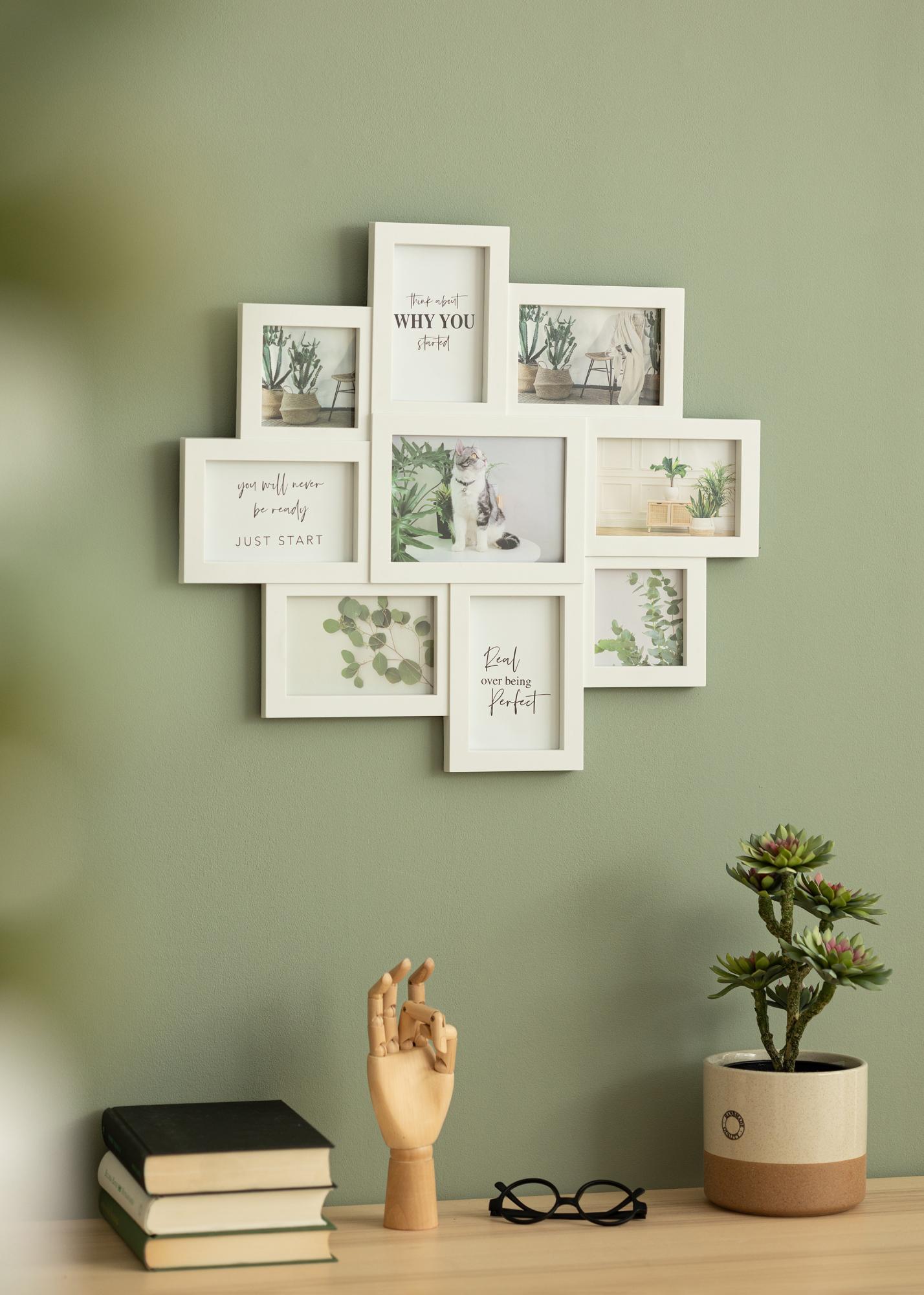 Raam on valmistatud komposiidist ja on rafineeritud valget tooni. Neutraalne värv teeb raamist suurepärase täienduse erinevat värvi fotodele. Saate valida, kas soovite oma kollaažiraami riputada horisontaalselt või vertikaalselt.