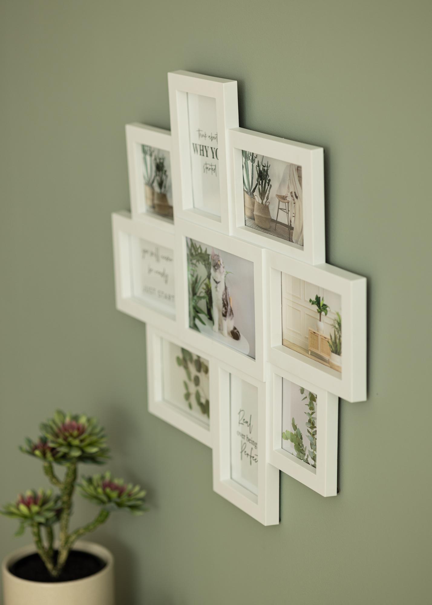 Selle stiilse kollaažiraamiga saate koguda kõik oma lemmikpildid ühte raami! Pildiraam mahutab kokku 9 pilti; 2 pilti suuruses 10x10 cm, 6 pilti suuruses 10x15 cm ja 1 pilt suuruses 13x18 cm. Lisaks saate paigutada pilte nii püst- kui ka rõhtasendis, mis võimaldab valida mitmekesisemaid fotosid. Raamil on asümmeetriline vorm, mis annab trendika ja kaasaegse ilme.