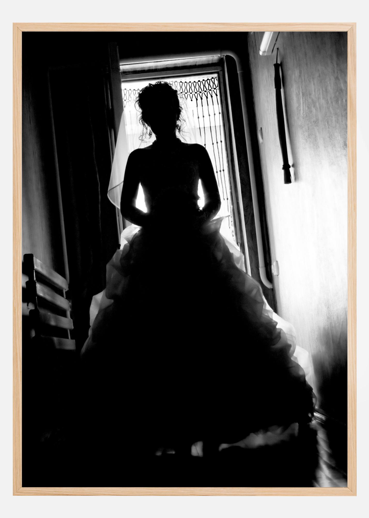 Fotokunst tumedas halltoonides vastusvalguses pildistatud pruudist. Tume ja hajus poster, mis tekitab huvi ja uudishimu. Kombineerige meeleldi teiste lemmikutega, et luua suurem ja elavam pildisein.