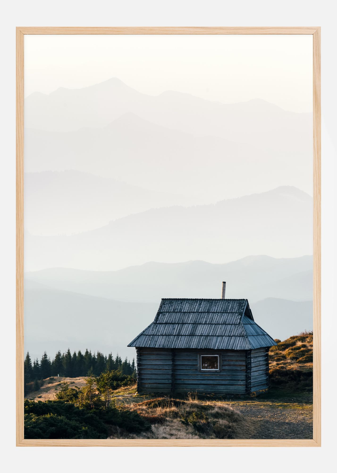 Lihtne, väike sinine maja mäetipul. Uduses taustas olevad kauged künkad loovad maagilise pildi. Maja vasakul olevad tumerohelised männid lisavad sellele lihtsale, kuid kaunile postrile lisavärvi. Riputa see heledale seinale, et luua avaruse tunne.