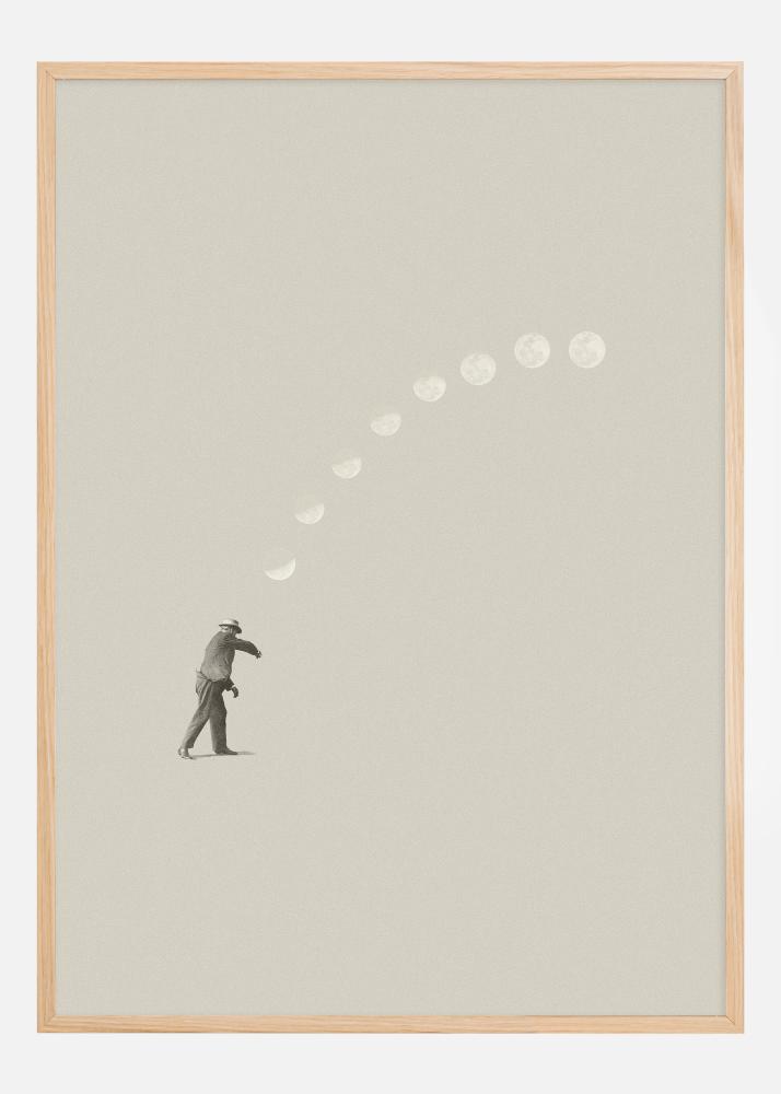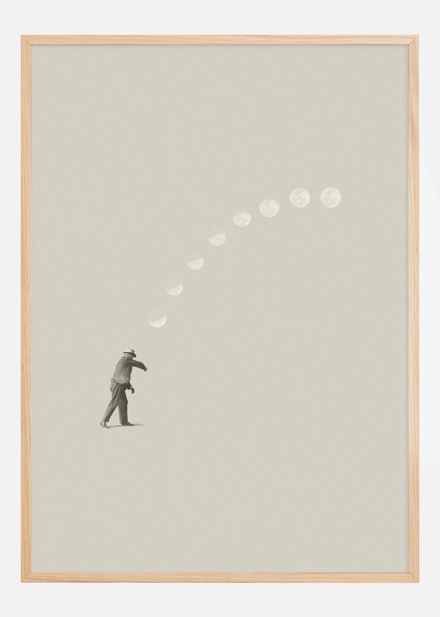 See poeetiline plakat kujutab mehe siluetti, kes viskab jõulise liigutusega kuu taeva poole. See on stseen, mis tabab hetke, mil kuu elegantne teele saadetakse ja moodustab mitme kuu faasi teekonna. See tegevus sümboliseerib võib-olla unistusi ja ambitsioone, mis liiguvad lõputute võimaluste poole. Pildi minimalism tugevdab jõulist žesti ja jätab vaatajale ruumi oma loo ja tähenduse lisamiseks.