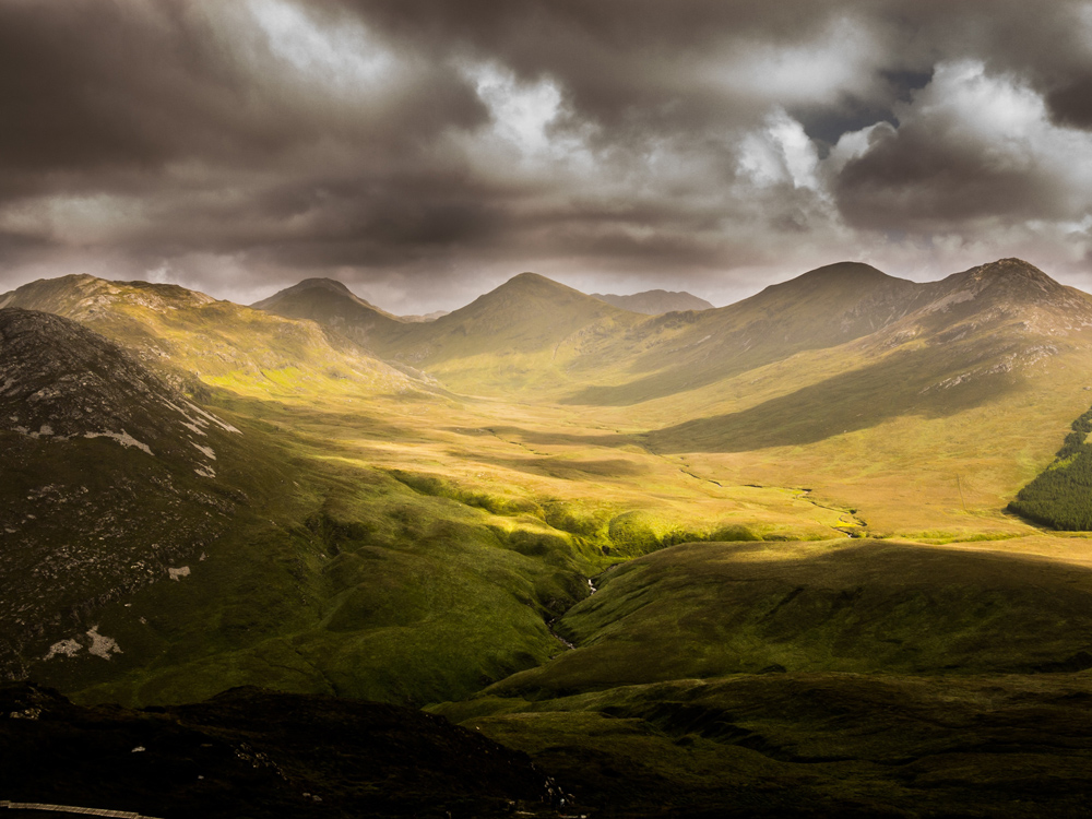 Dramaatiline maastikuportree, kus tormipilved kerkivad mäeaheliku kohal, samal ajal kui päike valgustab allolevat orgu. Tumedad summutatud värvid rõhutavad pildi dramaatilisust ja muudavad foto tõeliselt silmapaistvaks. Sobib kõige paremini raami, mis toob esile pildi sügavuse ja ei tõmba tähelepanu teemalt.
