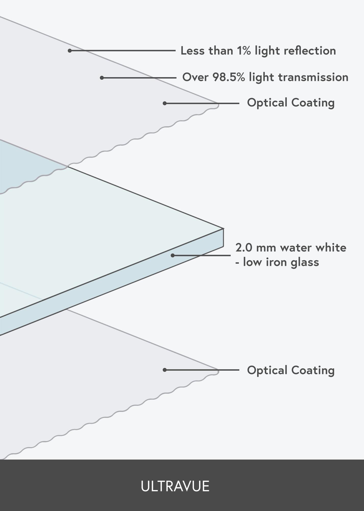 Mootude jargi valmistatud mittepeegeldav klaas - UltraVue UV70