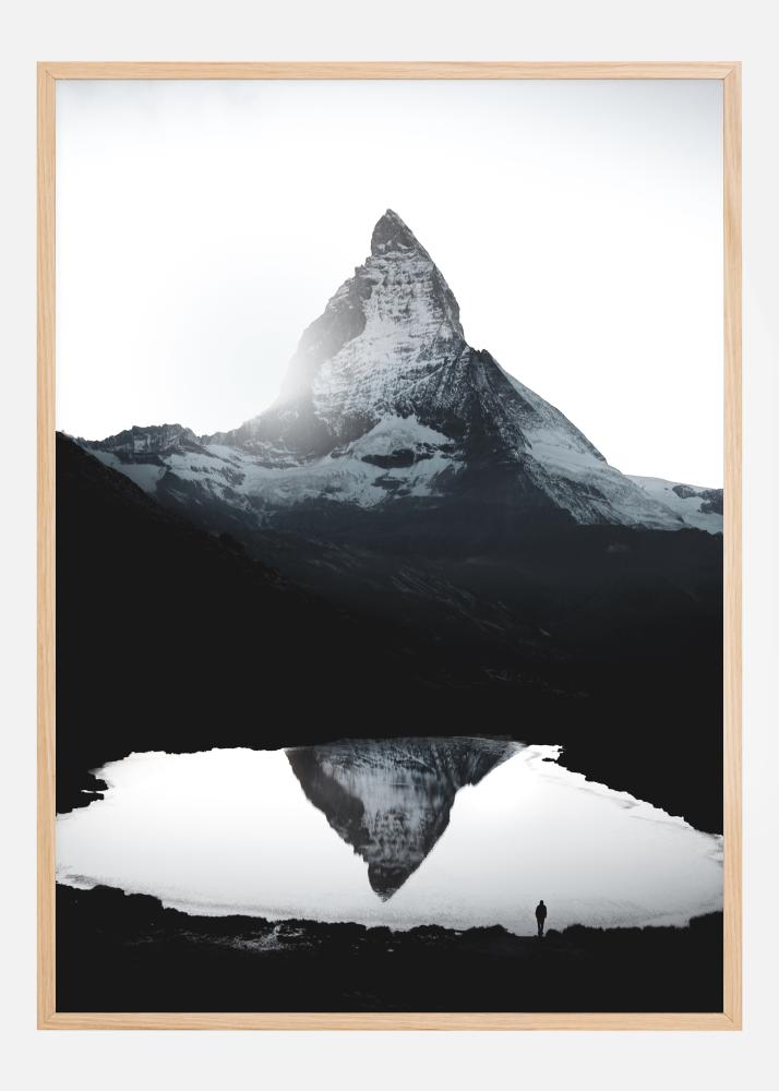 See imeline mustvalge plakat kujutab Matterhorni tippu, mis tungib hommikutaevasse. Päikesekiired varjavad mäe künklikku nõlva, samal ajal kui mees seda vaatab. Peegeldus jäädvustatakse stseeni allosas olevas järves. Kuula vaikust, kui riputad selle prindi oma elutuppa.