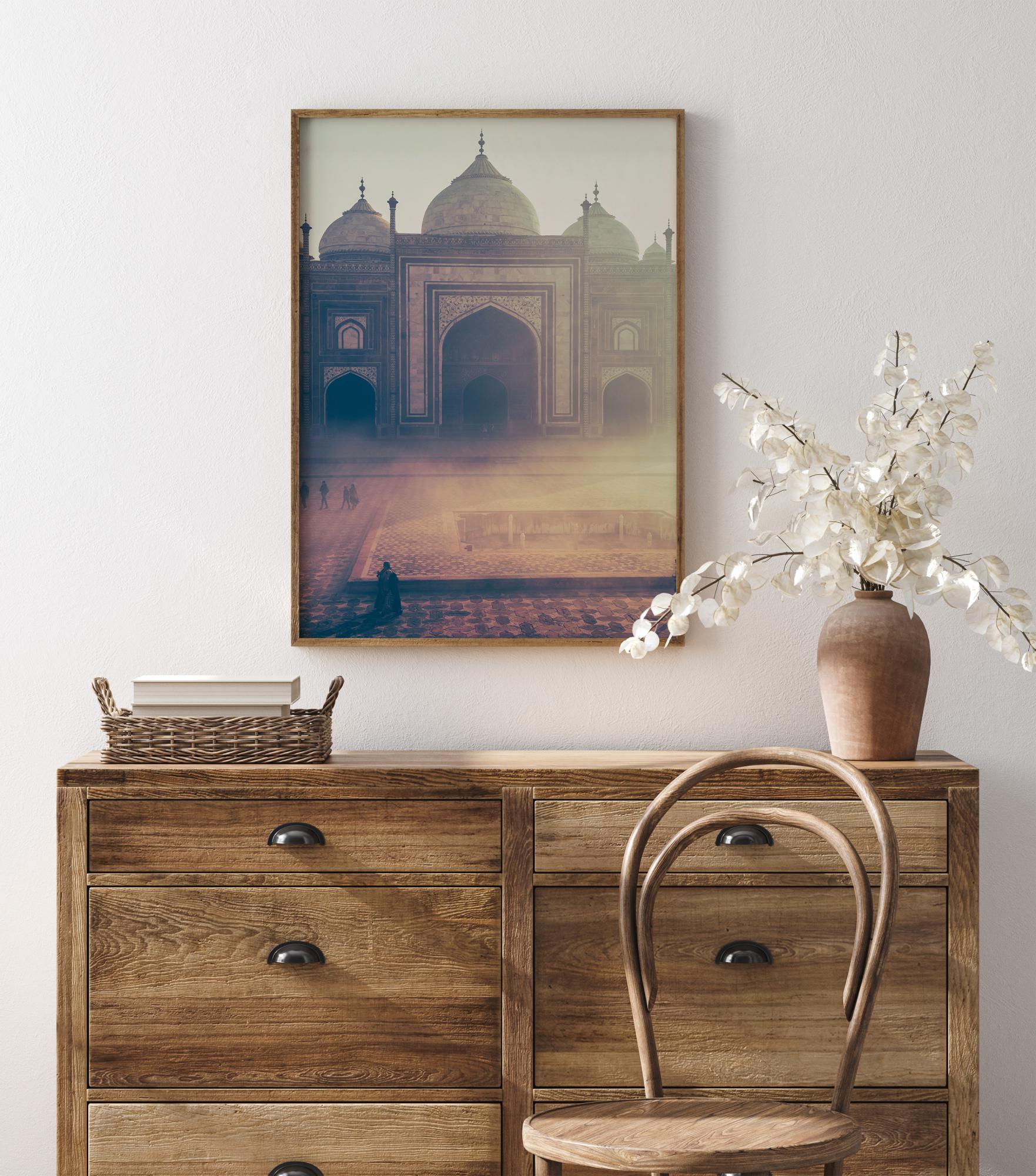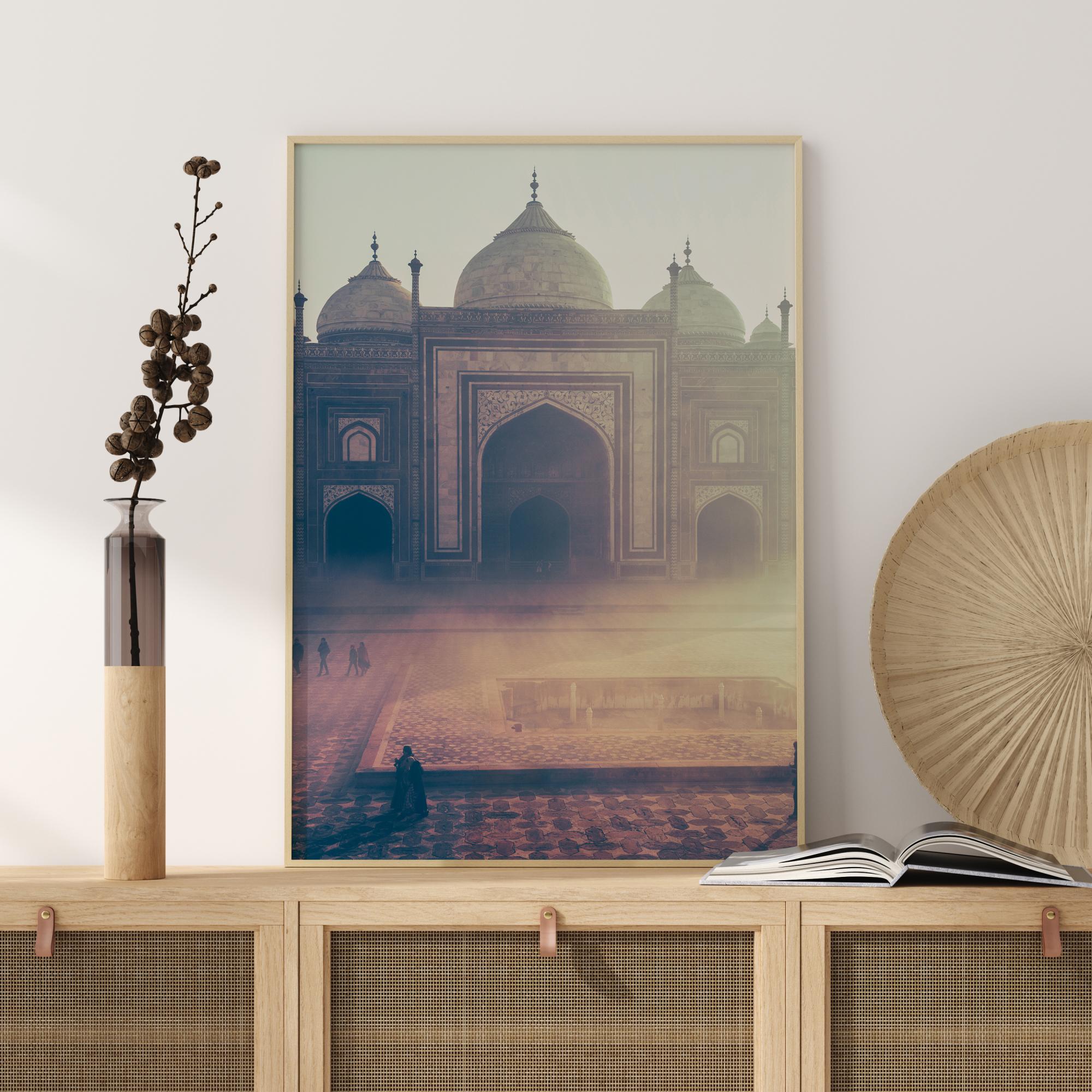 Islami maailma vaimne keskus seisab enesekindlalt väljaku esiplaanil. Väike inimrühm jalutab väljakul läbi eredalt valgustatud jääkudu. Moðe suurimat sissepääsu ääristavad väiksemad sissepääsud nii vasakul kui ka paremal. Rahulik plakat rahustava atmosfääri loomiseks.