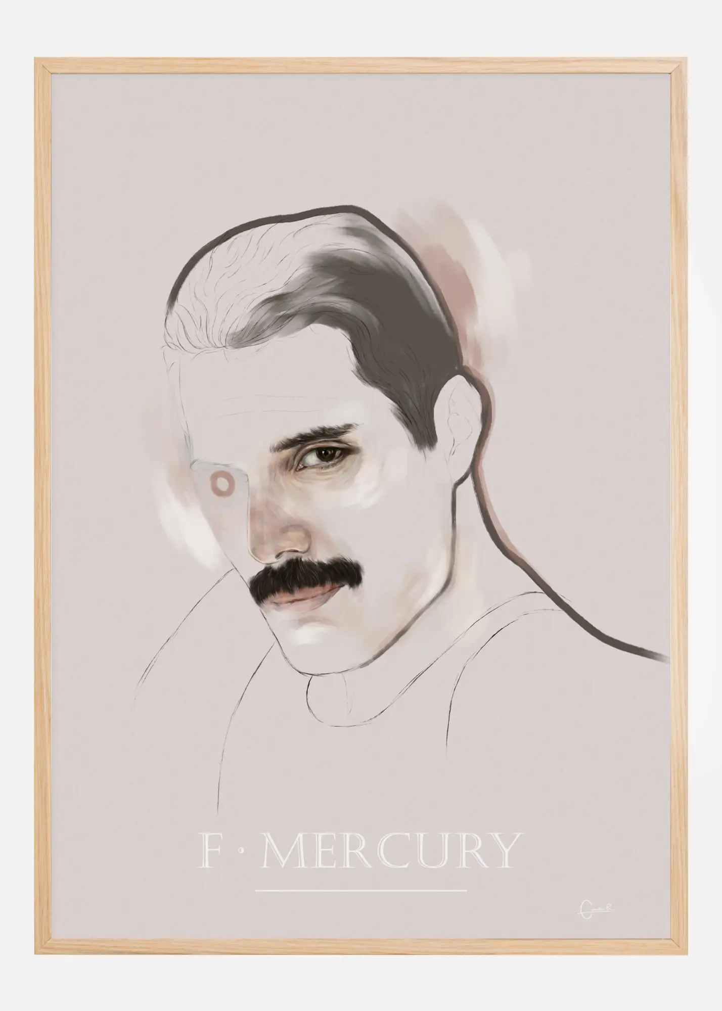 Muljetavaldav portree Freddie Mercuryst heleroosal taustal. Tema vasak silm köidab teie pilku, samas kui tema parem silm on asendatud rõngaga. Tema julge must vunts ja süsimust juuksed on selle lööva postri peamised omadused. Tugevad jooned joonistavad tema pea ja õlgade kontuuri. Kuula muusikat, kui riputad selle portree oma kodus üles.