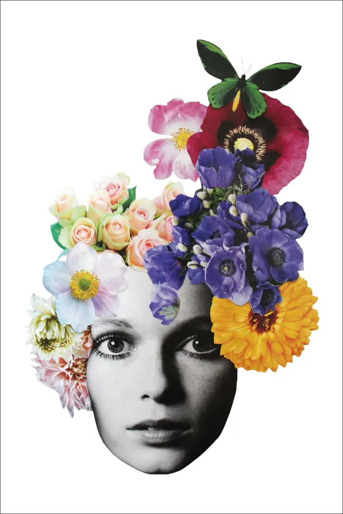 Ilus lilleline kollaaž, mis meenutab 60-ndaid. Ilusa värvibuketi põimub kokku mudeli näo kujutisega. Valgel taustal loob see poster peene koosseisu, mis sobib ekstsentrilisse elutuppa või stiilsesse vannituppa.