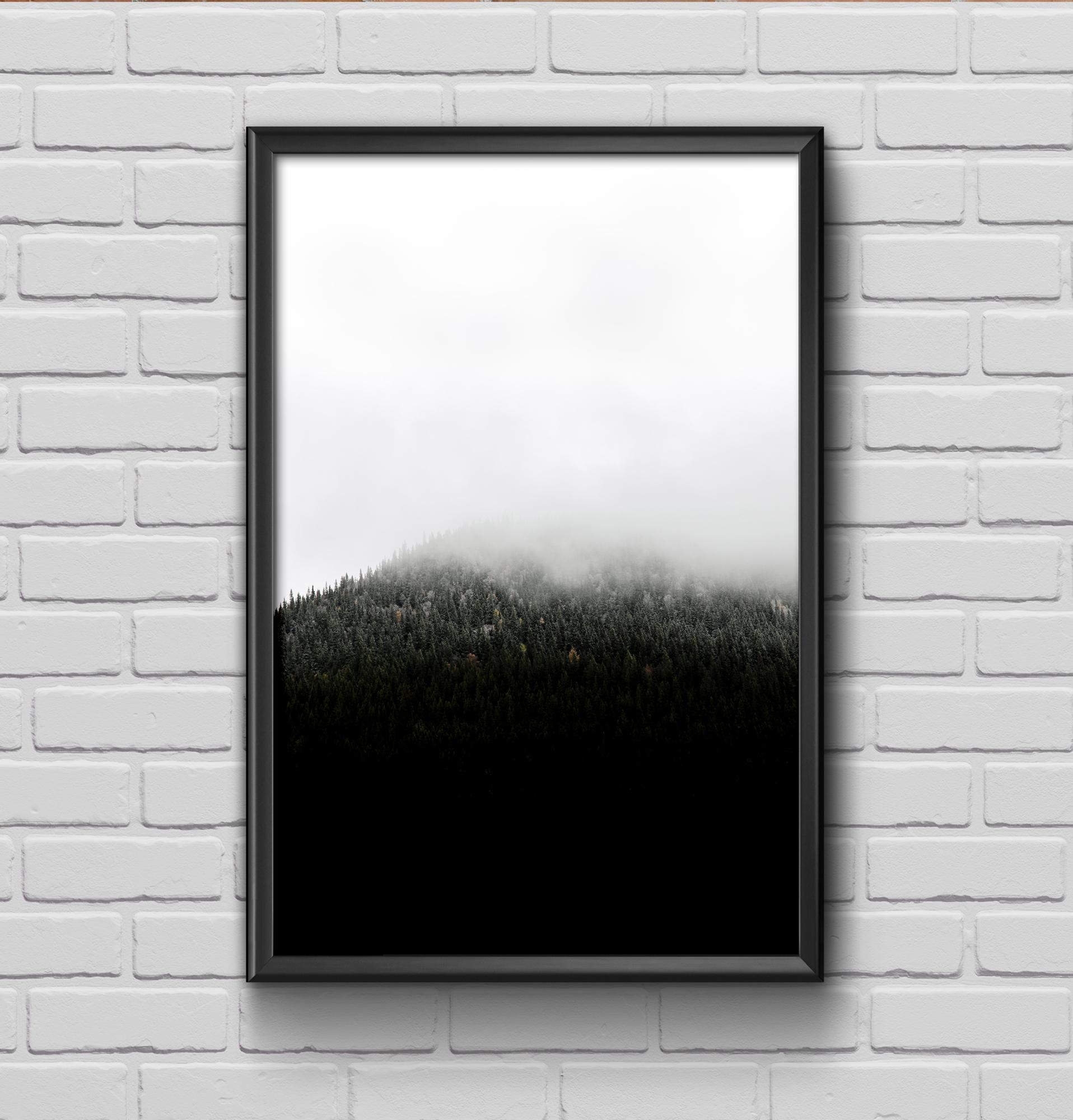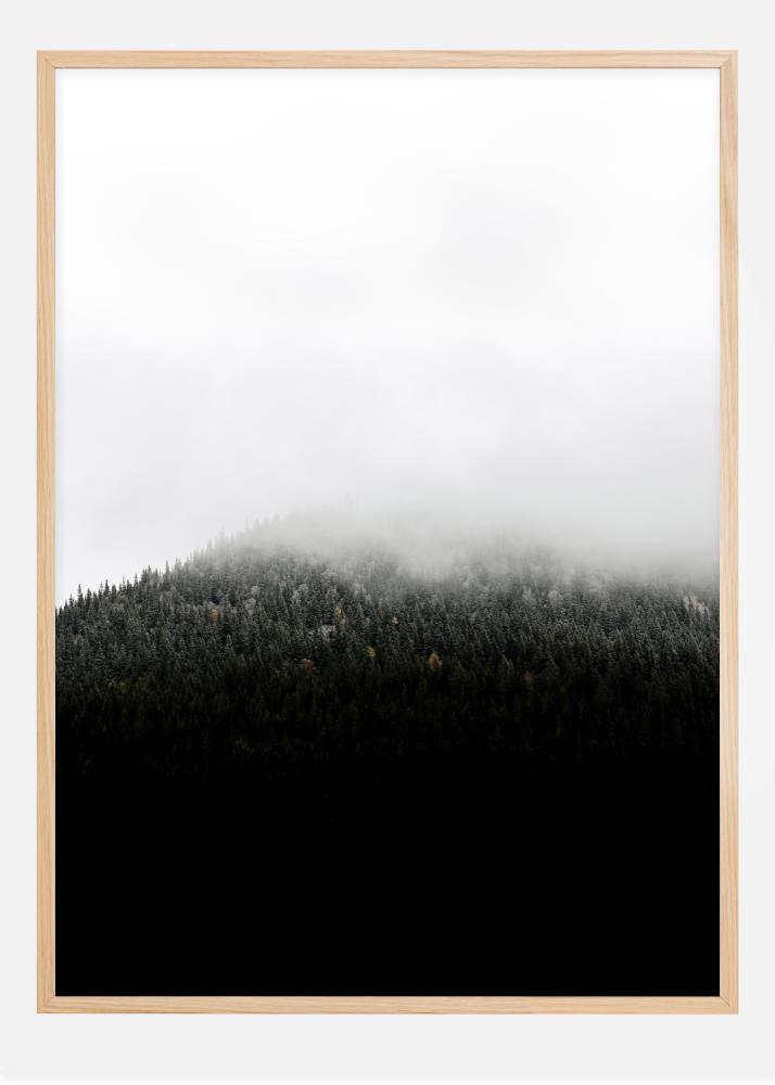Rahulik loodusfoto metsaga kaetud mäetipust, mis puhkab tiheda udu all. Rahulik ja harmooniline plakat teravate kontrastide ja pehmete joontega. Kombineeri julgelt mitmete meie suurepäraste motiividega suuremal pildiseinal.