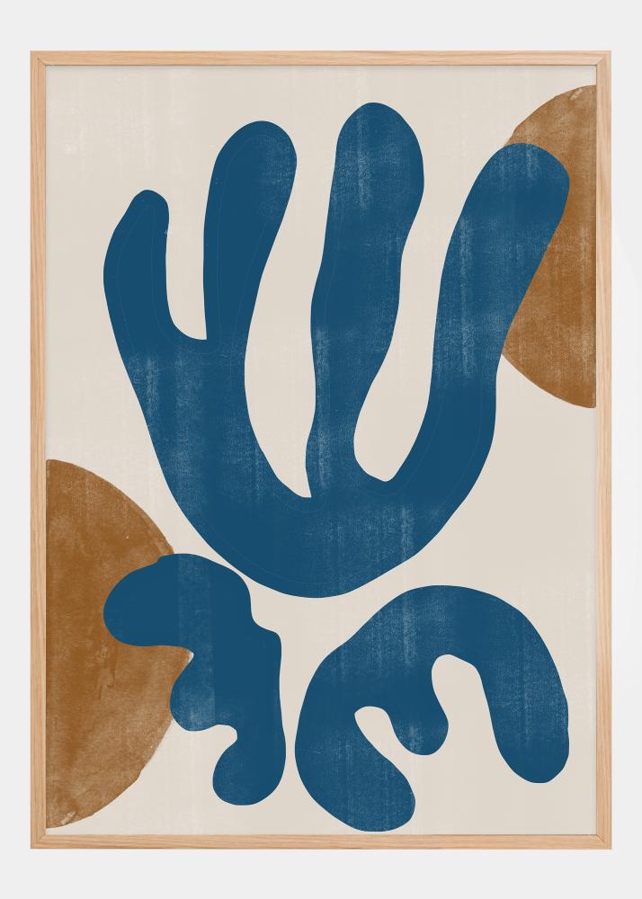 Selle elav plakati kombineerib julged vormid ja maise värvipaleti, et luua nii moderni kunsti kui ka looduse imede tunnet. Suured, pühkivad sinised vormid tekitavad mõtteid veest või taimestikust, samas kui ookri detailid lisavad sooja ja loomuliku kontrasti. See disain on suurepärane näide sellest, kuidas abstraktne kunst suudab jäljendada ja austada meie ümbruskonna orgaanilisi mustreid.