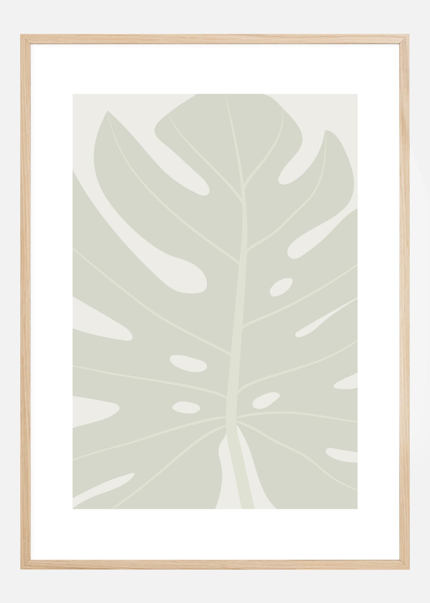 Põnev plakat Monstera teelehega, mis on joonistatud tumedale ristkülikule valgel pinnal. Trükisel on lehe saagja kujuga lehed kaunilt kaardunud ja mõned on pildilt välja lõigatud. Silmakujulised keskstruktuurid annavad teie kodule põneva tunde.