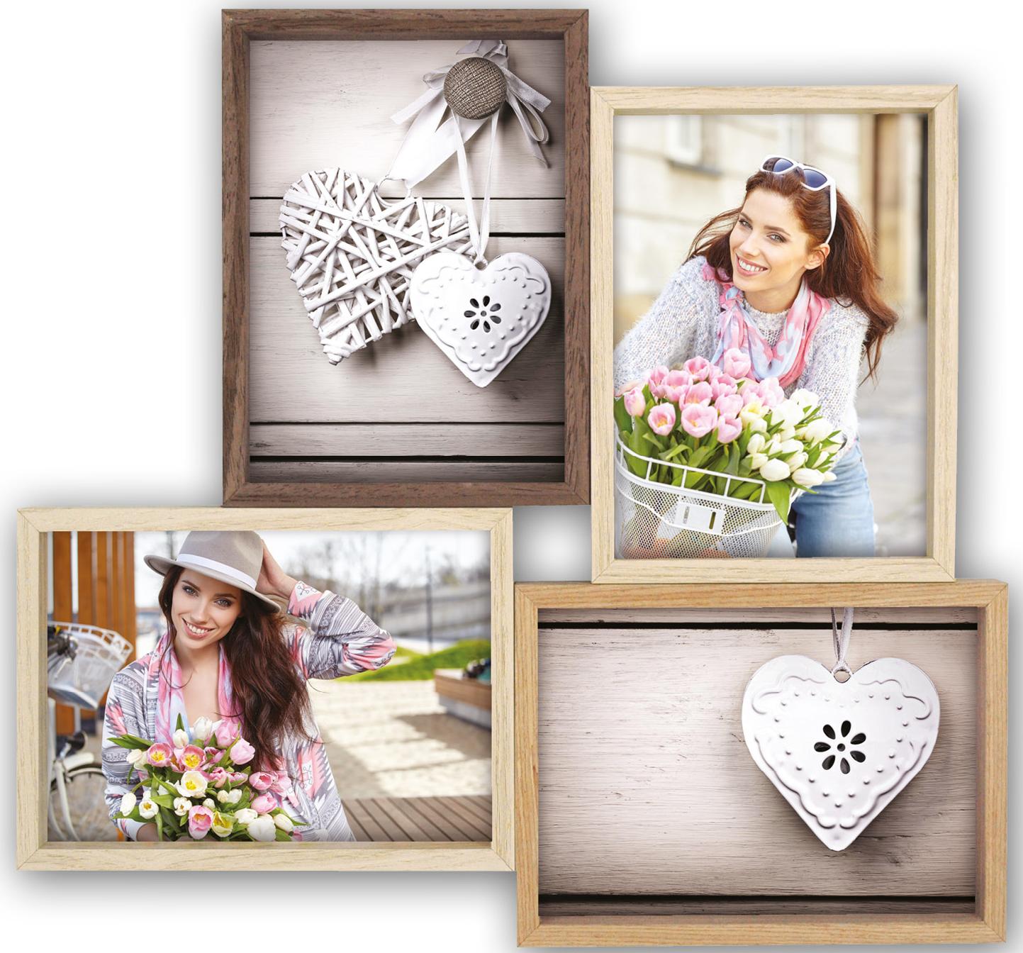 Iga pilt kollaažiraamis võib olla suurusega 10x15 cm, mis on tavaline suurus fotodele. Raam on valmistatud puidust, mis annab loomuliku ja ajatuma tunde, sobides enamiku kodudega.