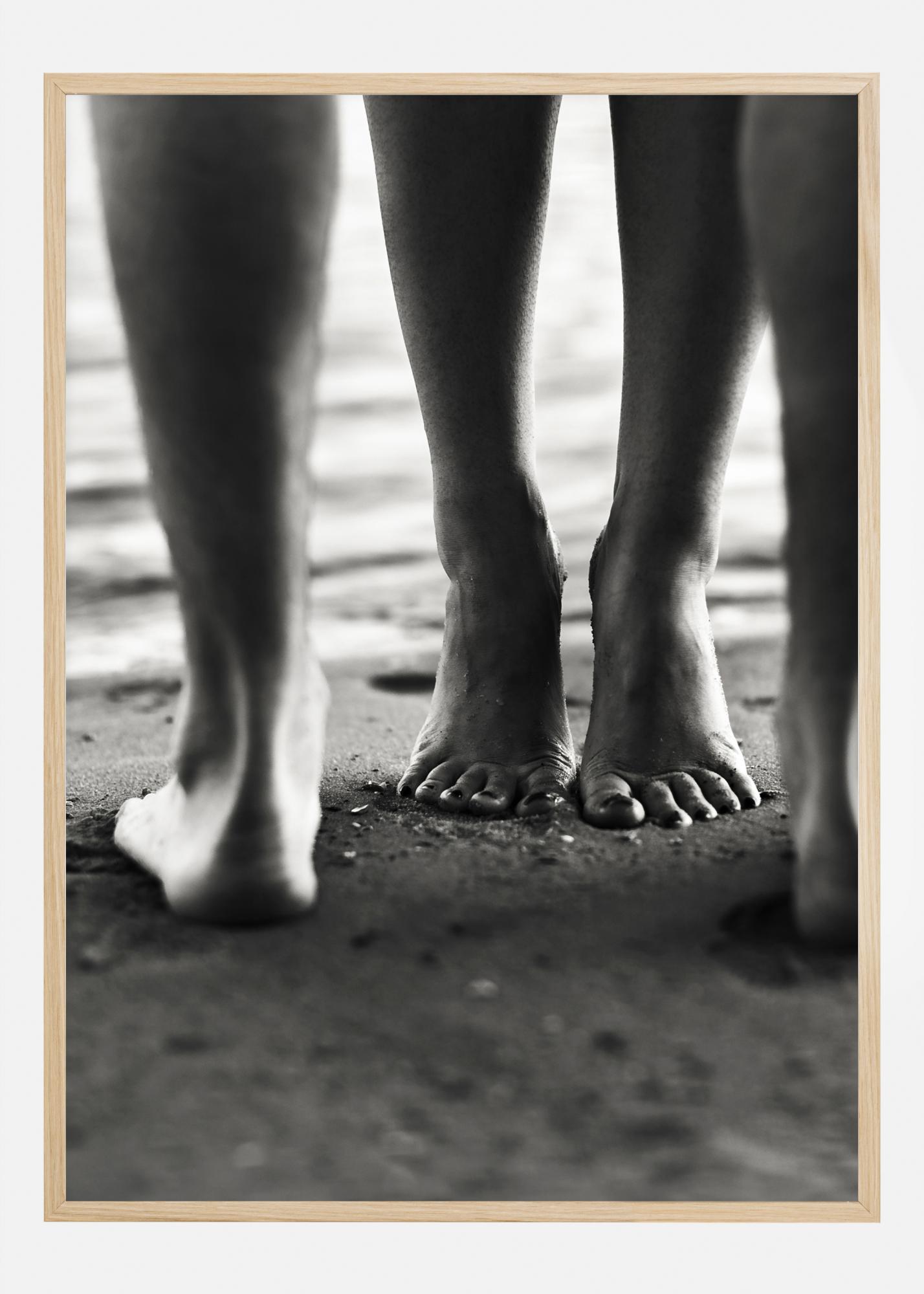 Romantiline plakat mustvalge lähivõttega neljast jalast rannas. Pilt kujutab kahte inimest, kes seisavad teineteise vastas. Pilk jääb kergesti kinni varvastel seisvale figuurile. See ilus trükk tekitab romantilise tunde ja sobib teie magamistuppa, kui soovite romantilist puudutust.