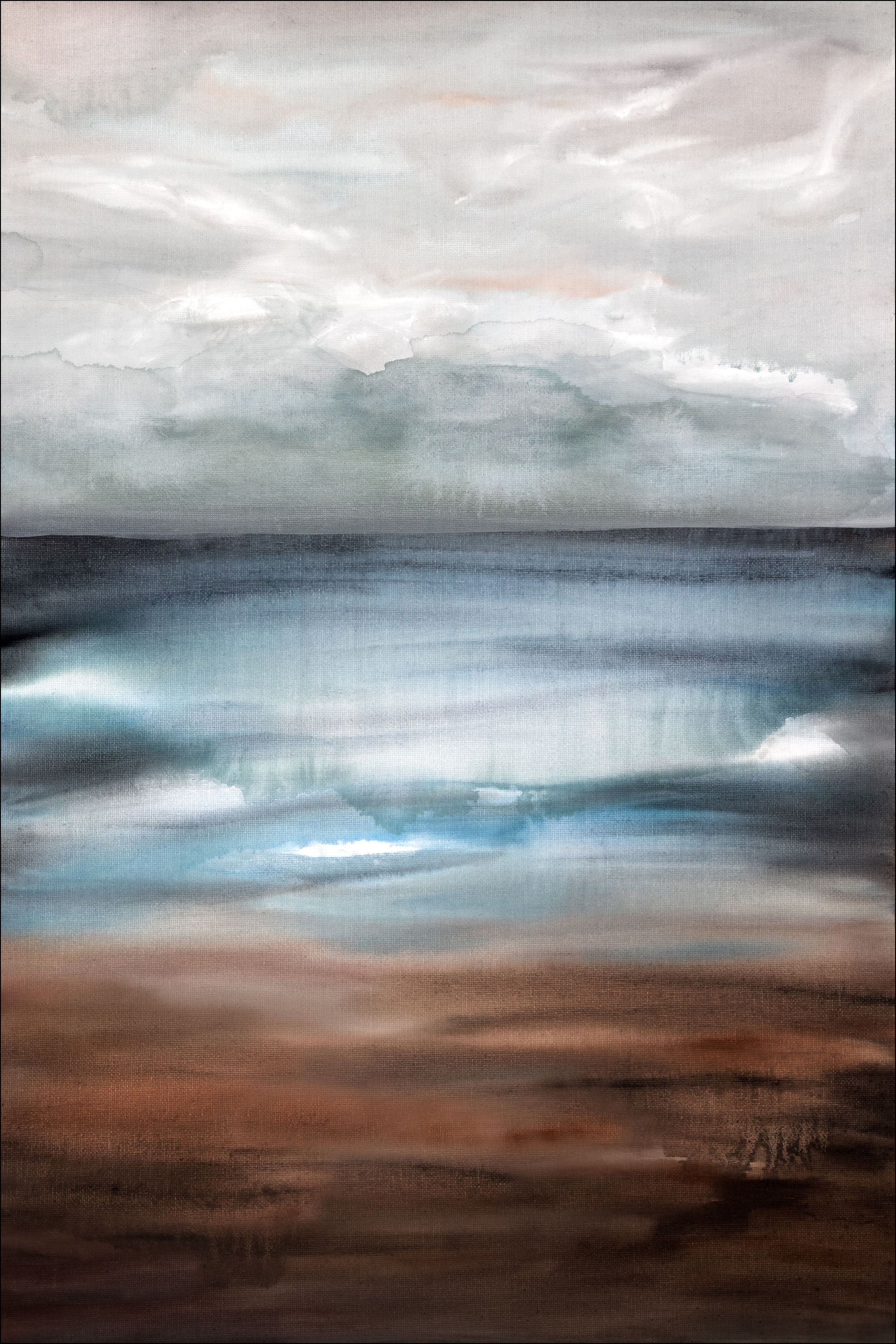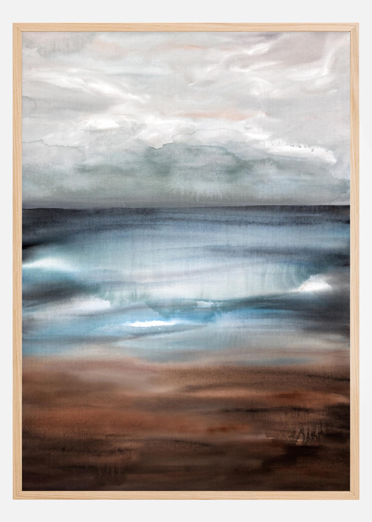 Uue päeva lõõgastav kujutis. Pehmed pastellvärvid näitavad pilvist hommikut merel oleva uduga. Horisont sulandub täiuslikult hallide ja valgete pilvedega. Selle lõõgastava ja rahustava postriga seinal võid peaaegu kuulda merd.