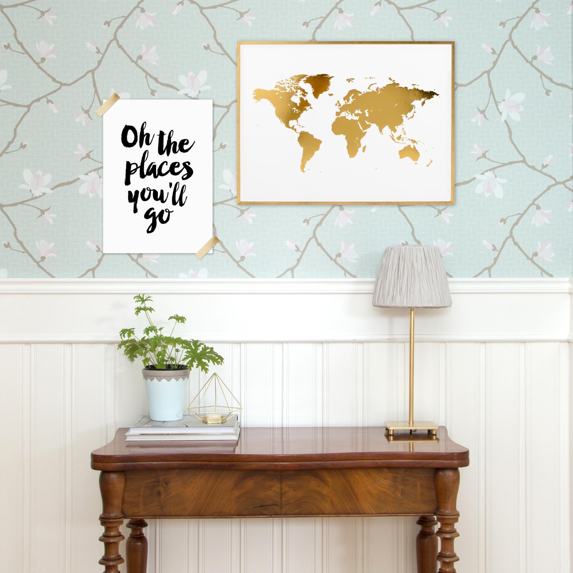 Kohtuge elu kõigi väljakutsetega selle imelise plakatiga seinal. Postril on maitsekas ja lihtne disain, mis koosneb valgest taustast ja tekstist ”oh the places you'll go”, mis on trükitud noorusliku, käsitsi kirjutatud kirjastiiliga. Kuna see viitab Dr. Seussi kuulsale raamatule, sobib see eriti hästi värvilise raamiga. Plakat on saadaval mitmes erinevas suuruses, millest üks sobib kindlasti teie seinale või teie lauale.
