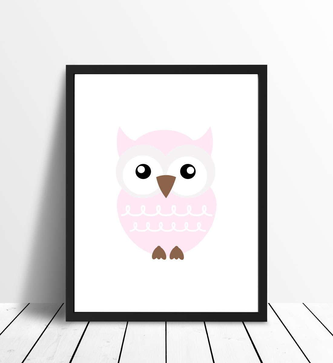 Armas plakat siselinnu number üks, öökulliga. Illustreeritud stiliseeritud roosaroosa öökull valgel taustal on saanud kaasaegseks klassikaks. Motiiv sobib hästi nii elutuppa kui ka lastetuppa ning täiendab suurepäraselt sisekujundust, mis toob esile pildi värvi. Ühenda teiste lindude või loomadega, et luua metsik tunne.