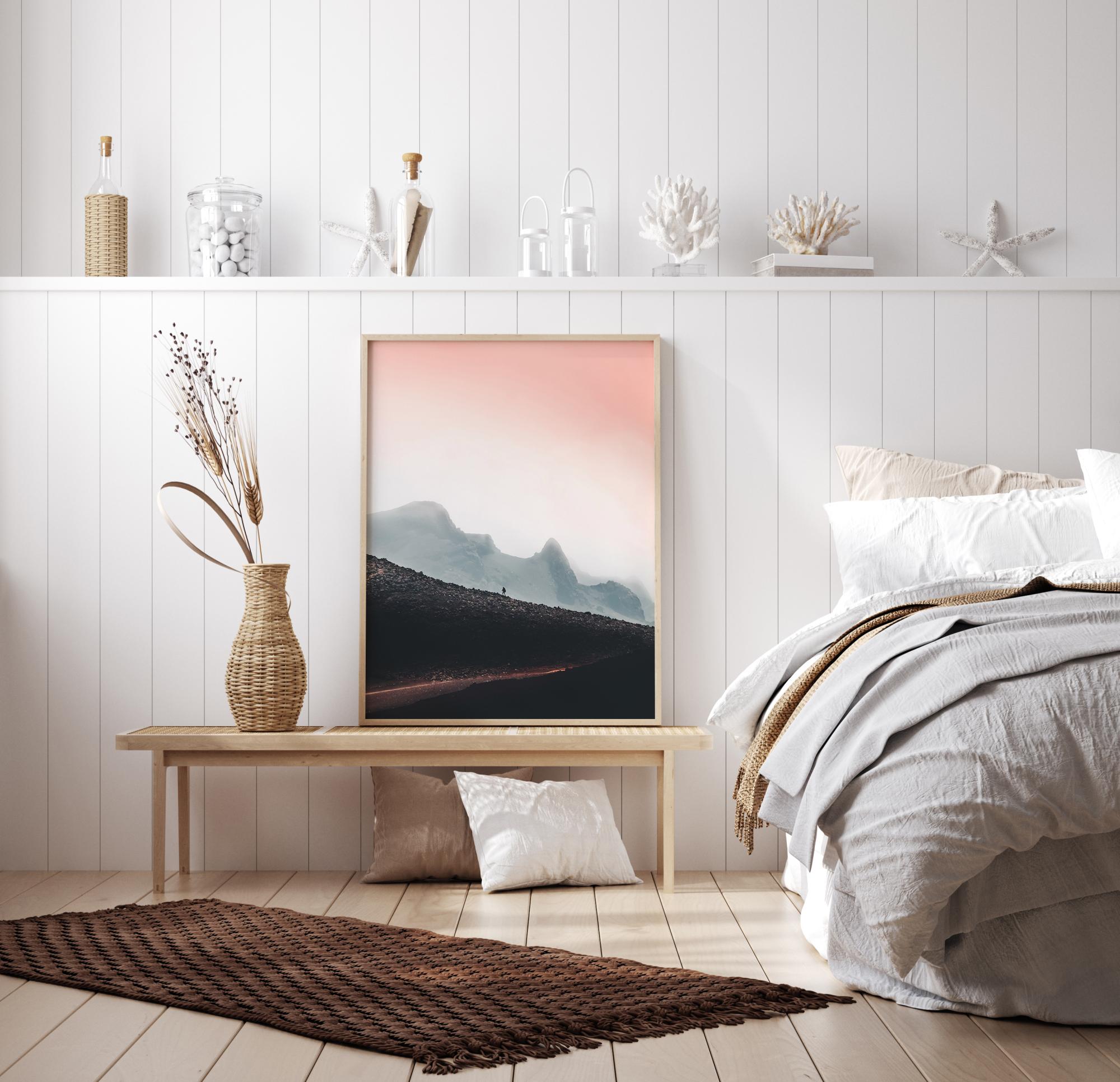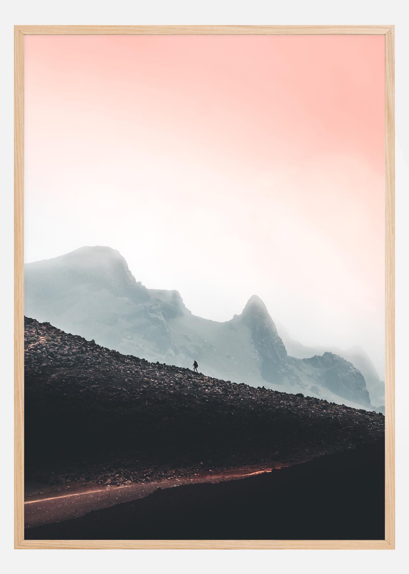 Udune trükis maastikust. Taustal saab näha virsikuvärvi taevast, kus kaugel figuur ronib mäkke. Esiplaanil läbib väike rada mägesid. Täiuslik plakat looduse armastajatele.