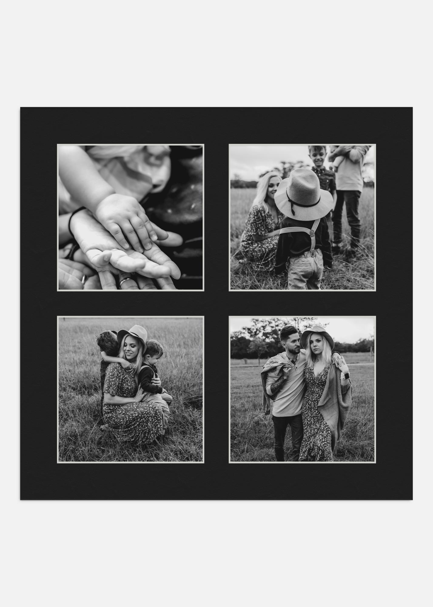 Käivita raamivalija »Happesusevaba must kollaaži paspartuu kaldus lõigatud valgete servadega kõrgeima kvaliteediga. Paspartuus on ruumi 4 pildi jaoks. Ideaalne, kui soovid luua oma isiklikku fotokollaaži.