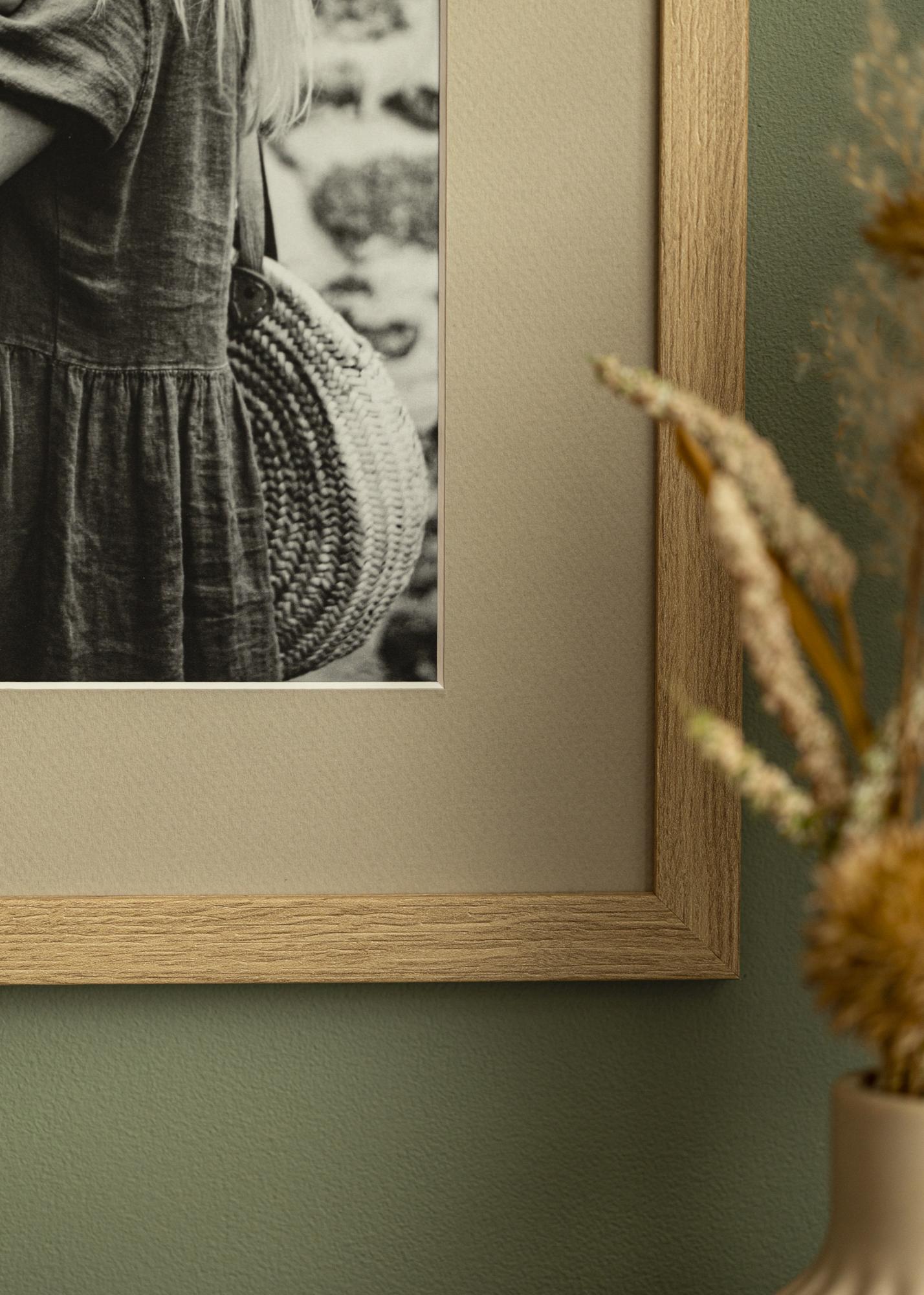 Passepartout on loodud sobima piltidele suurusega 15x20 cm, samas kui välimised mõõtmed on 21x29,7 cm, mis vastab A4-formaadile. Valge südamikuga diagonaalselt lõigatud sisemine serv loob elegantse kontrastiefekti ja annab sügavuse, mis tugevdab pildi väljendusrikkust.