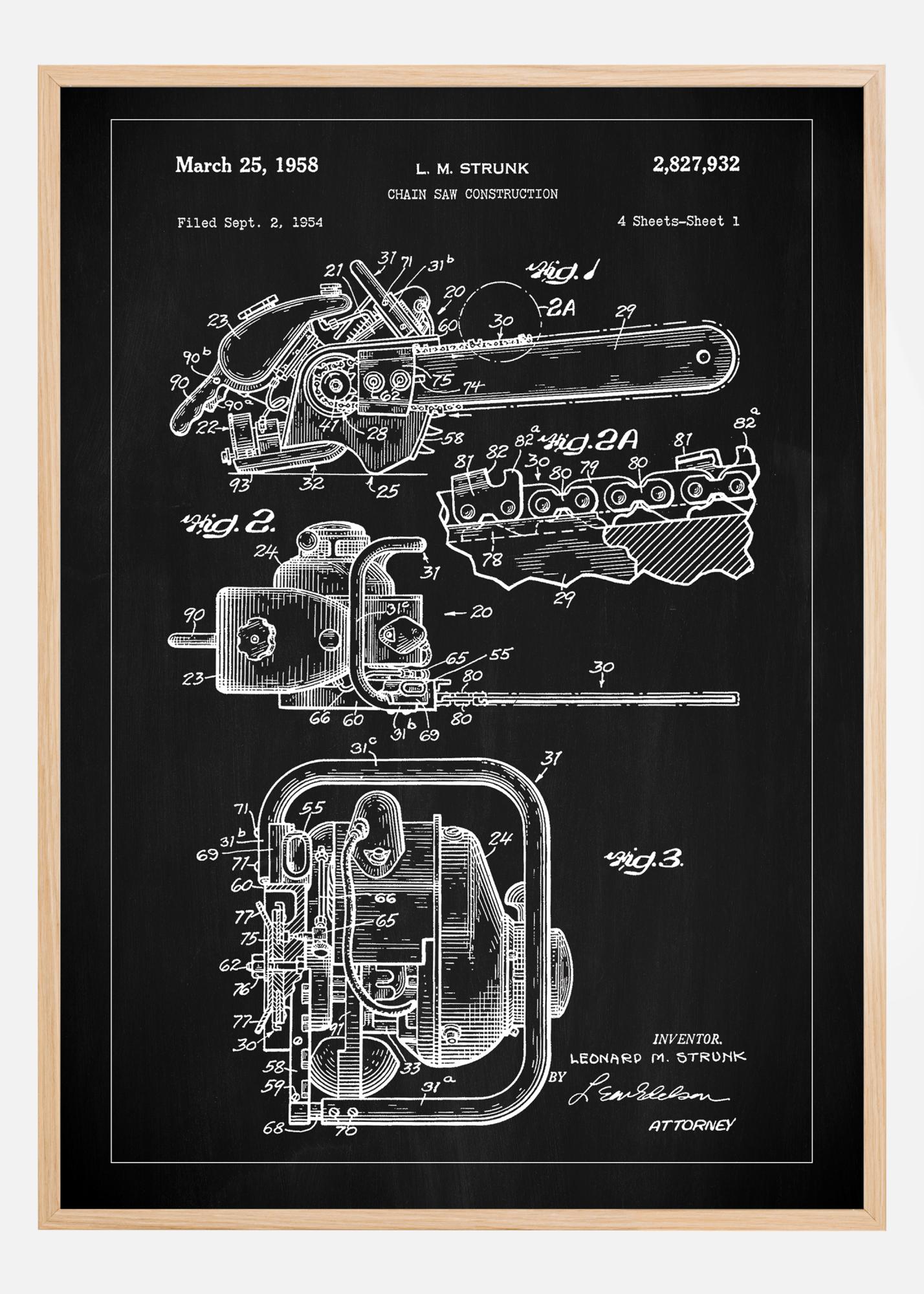 See patendiposter on võimas meeldetuletus innovatsioonide kuldajast, mida näitab Leonard M. Strunki mootorsae konstruktsiooni disain, mis patenteeriti 25. märtsil 1958 patendinumbriga 2,827,932. Illustratsioon kujutab konstruktsioonide üksikasju terava kontrastsusega, pakkudes visuaalset arusaama mehhaanikast, mis juhib seda olulist tööriista.