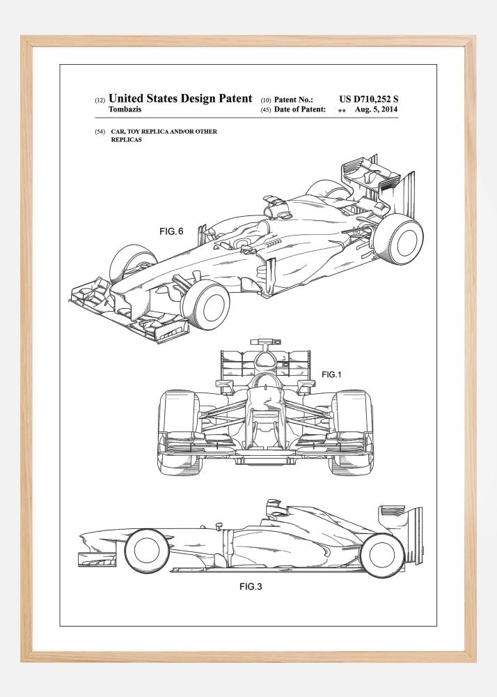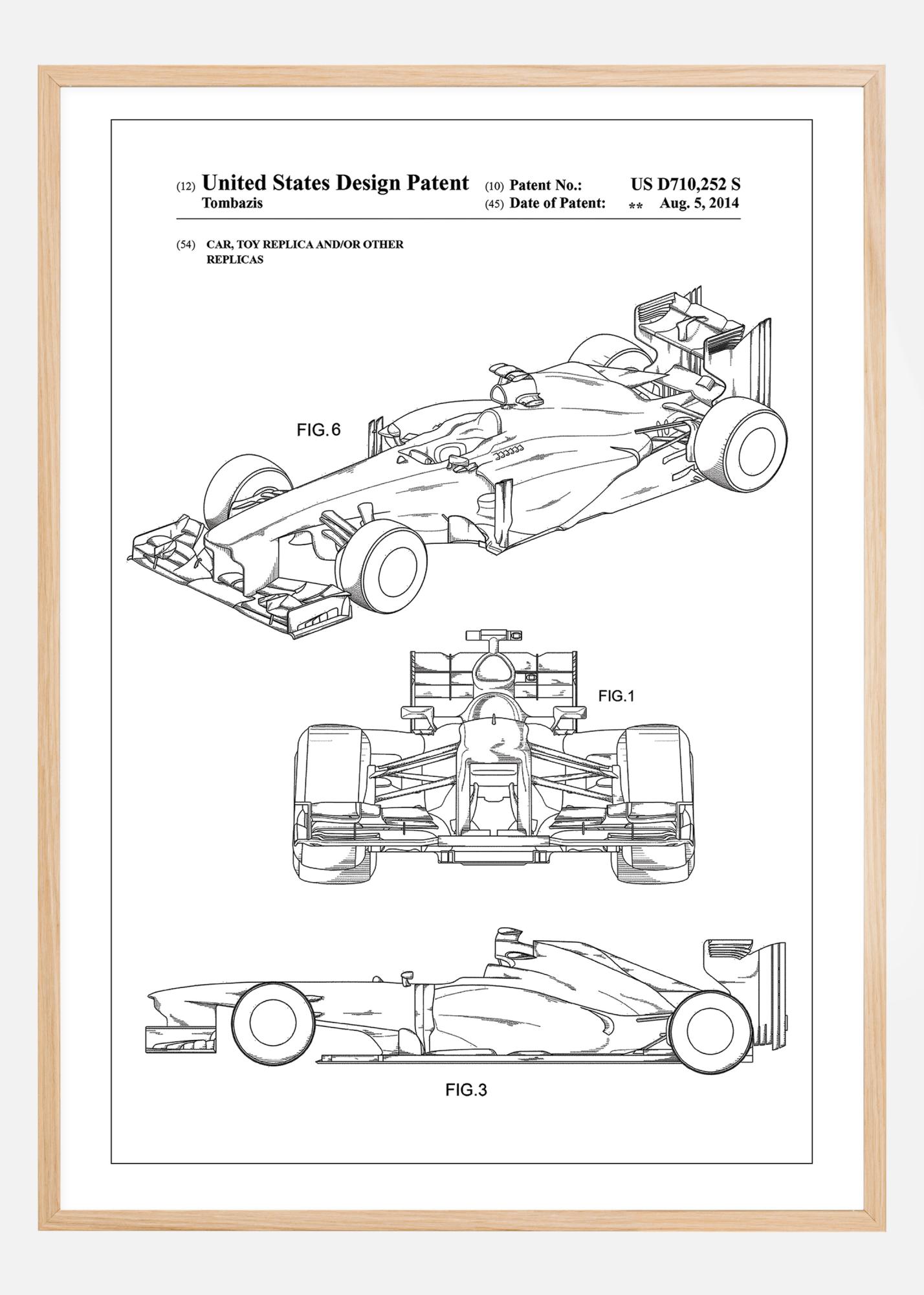 See patendiplakat kujutab võidusõiduauto, täpsemalt Vormel 1 auto disaini, mis on üksikasjalikult kirjeldatud USA disainpatendis US D710,252 S, väljastatud 5. augustil 2014. Joonis näitab autot mitmest erinevast vaatenurgast, et anda täielik ülevaade selle aerodünaamilisest ja uuenduslikust disainist. Selline disain on kriitilise tähtsusega motosportis ja aitab kaasa auto jõudlusele ja esteetikale.